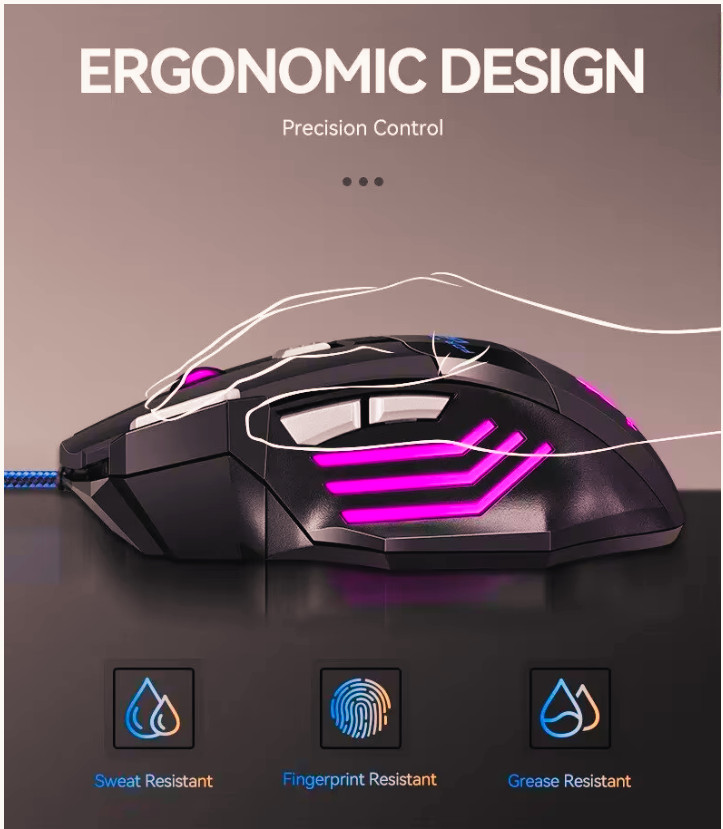 Gaming Mouse RGB Backlit Ergonomic Mice 7D Esports Wired Mouse for Laptop PC