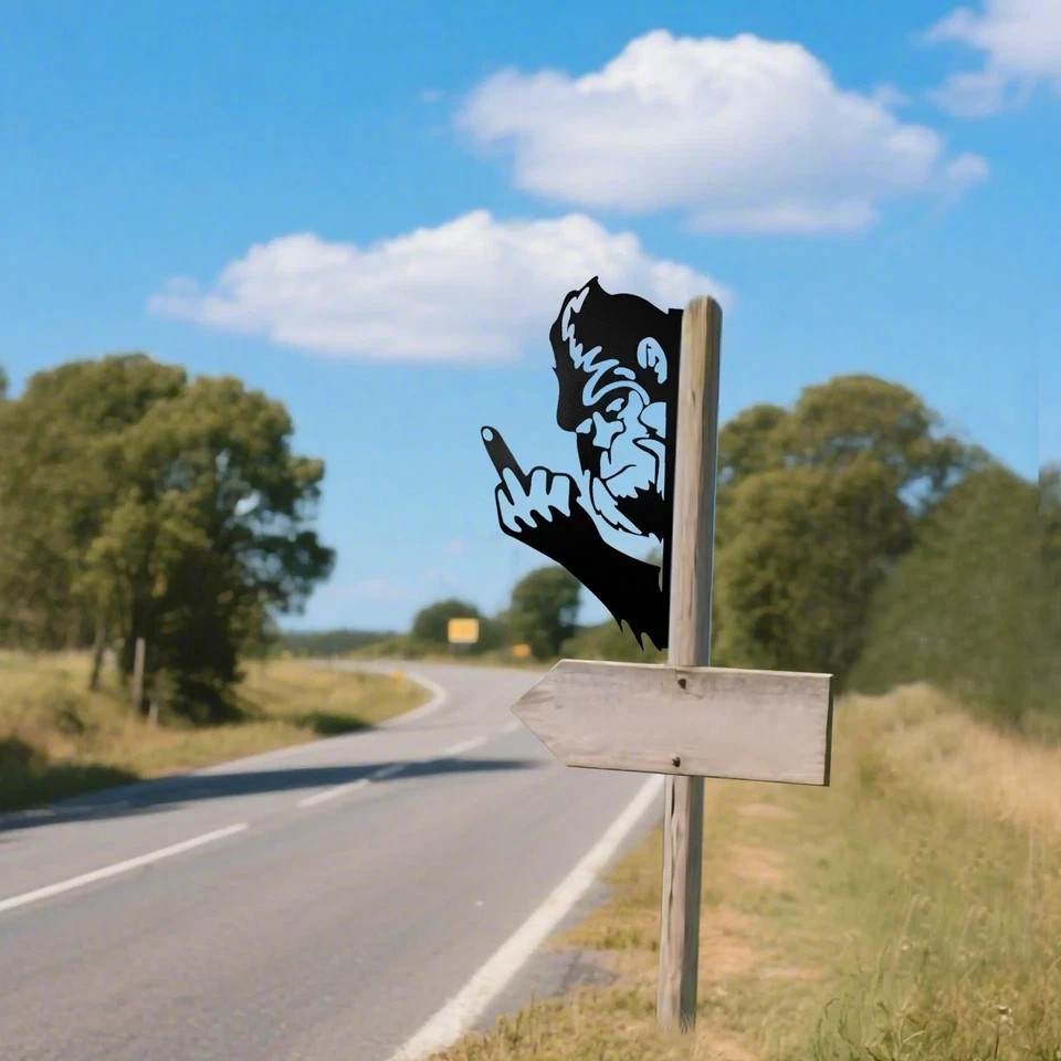 Bigfoot Middle Finger Metal Yard Sign Funny Prank Decor, Peeking Sasquatch Tre