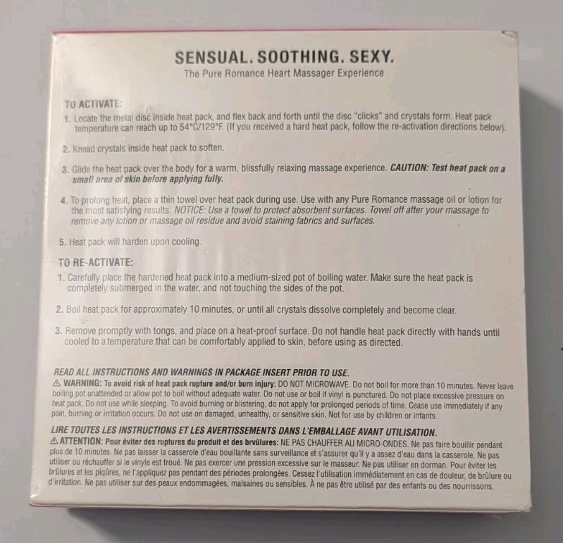Pure Romance HEART MASSAGER Heart Shaped Heat Pack Reusable SEALED