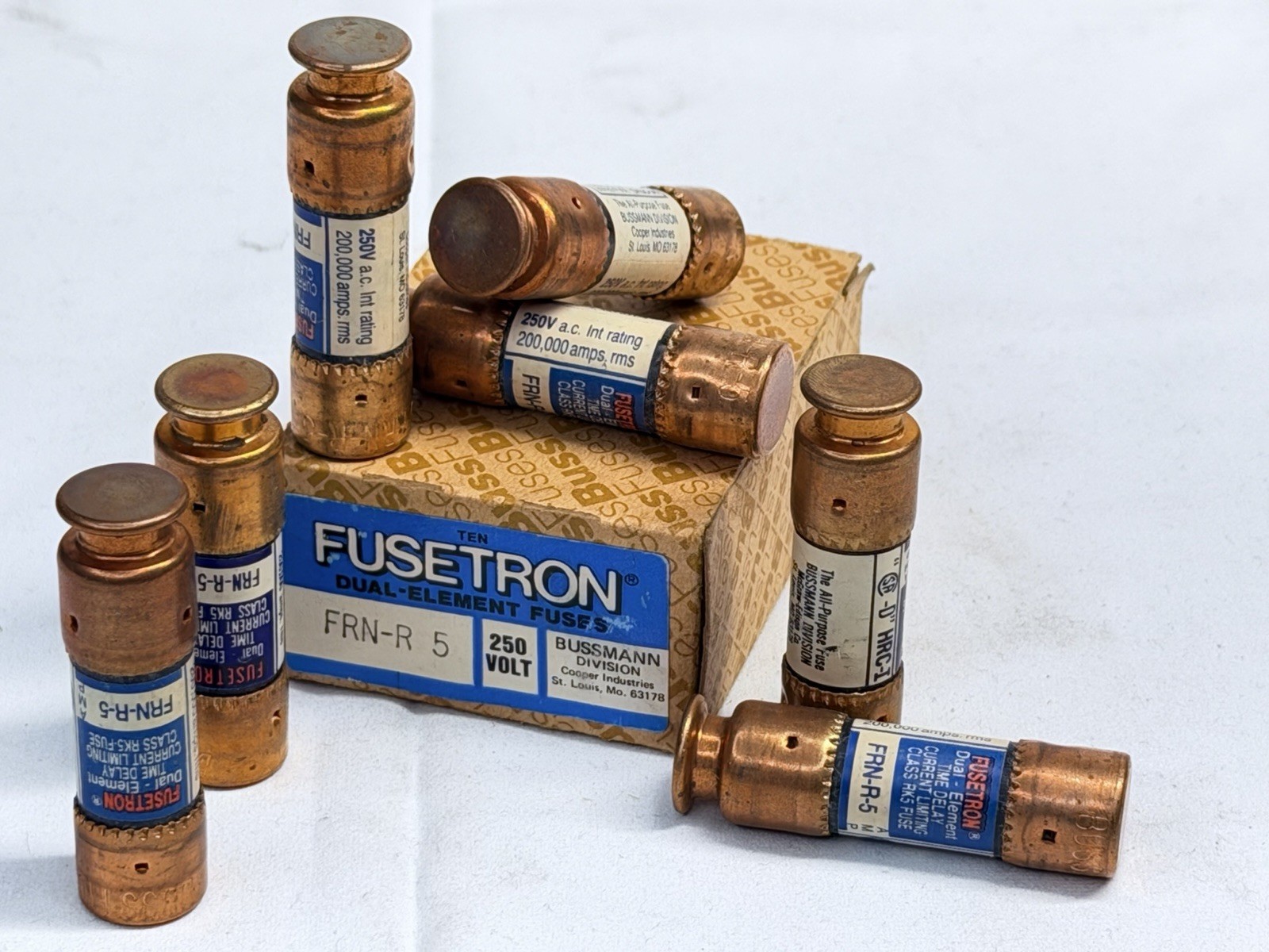 Bussmann Fusetron FRN-R-5 Dual Element Time Delay Fuse 250V Lot of 7 NOS