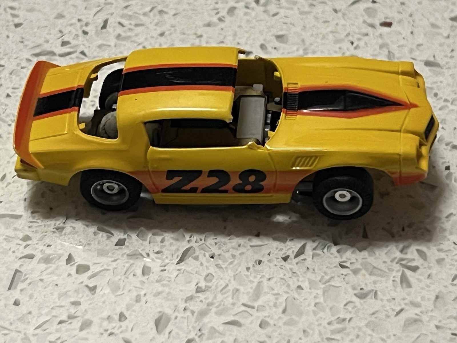 TYCO '1979 Chevy Camaro Z28, Yellow / Orange / Black SLOT CAR TESTED RUNS