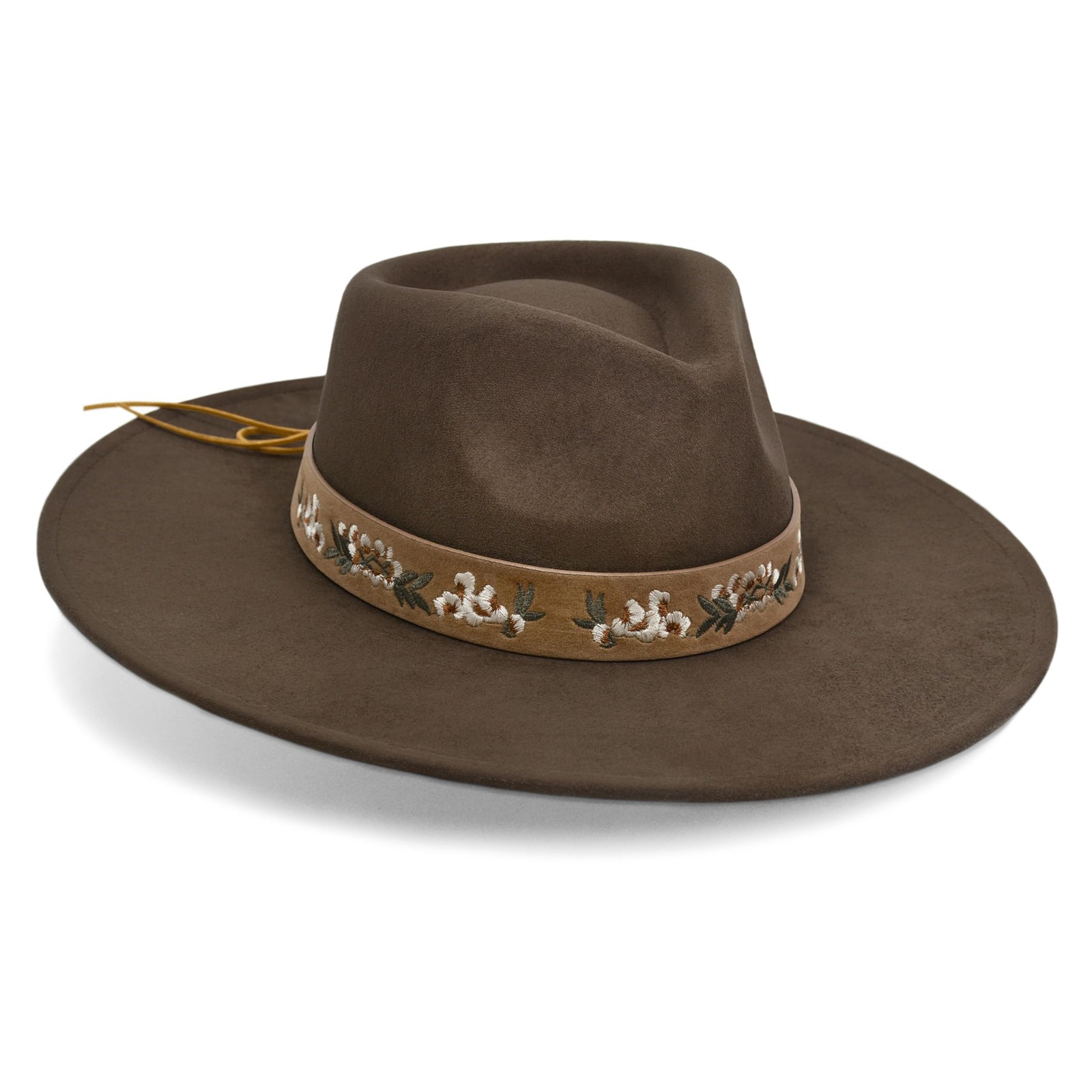 Model Name: Fluffy Sense. Wide Brim Felt Rancher Fedora Hat