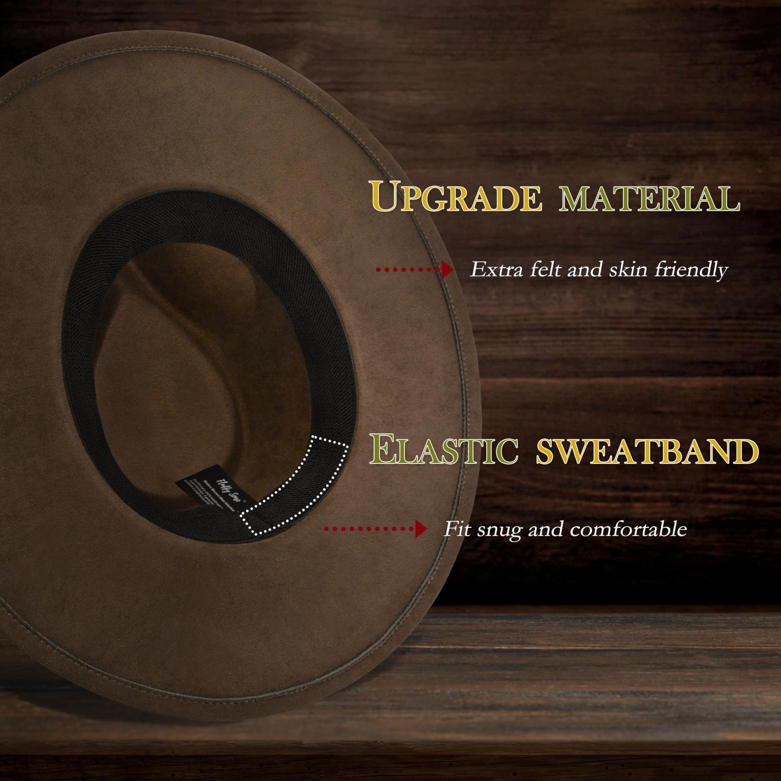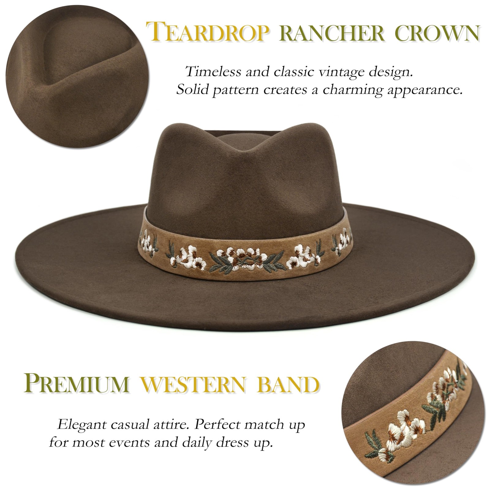 FLUFFY SENSE. Big Wide Brim Felt Rancher Fedora Hat for Women and Men - Boho ...