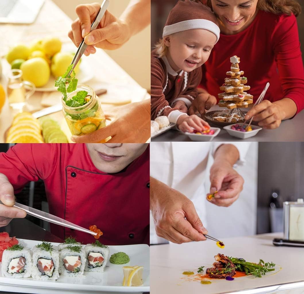 5pc Cooking Tweezers Precision Kitchen Plating Tweezer Stainless Steel Curved