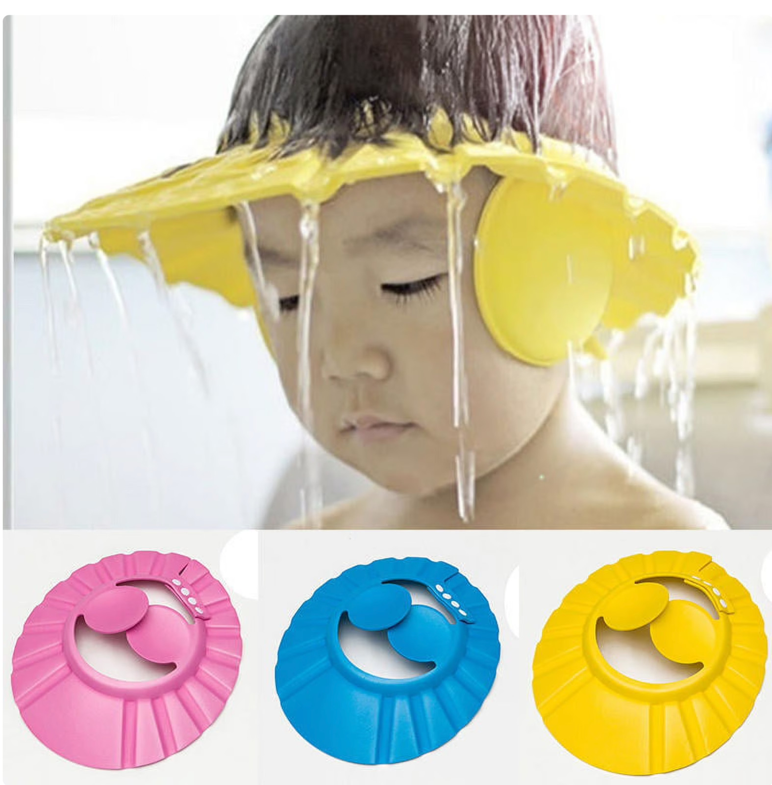 3 Pcs-New Adjustable Kids Baby Shampoo Bath Bathing Shower Cap Wash Hair Shield