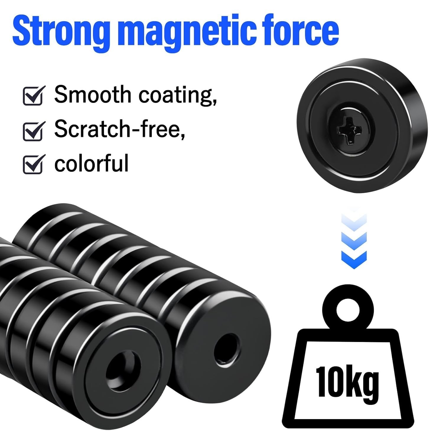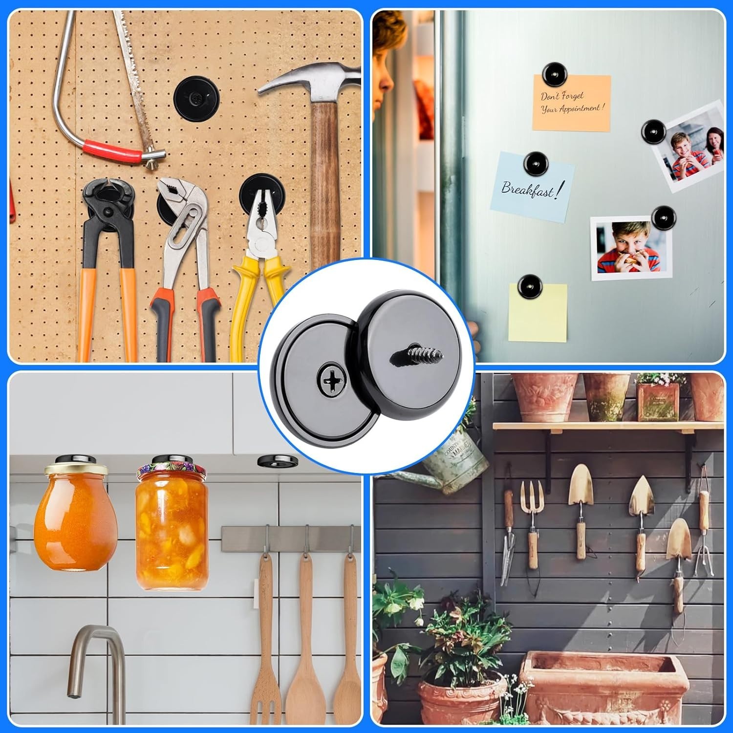 • 8 Pack Strong Neodymium Cup Magnets 22LBS, Black Round Base Cup Magnets with ...