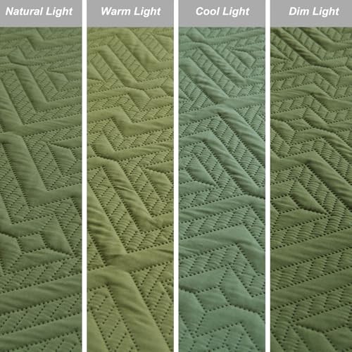 как выглядит Full/Queen Quilt Set 3 Pieces, Lightweight Olive Green Bedspread-90