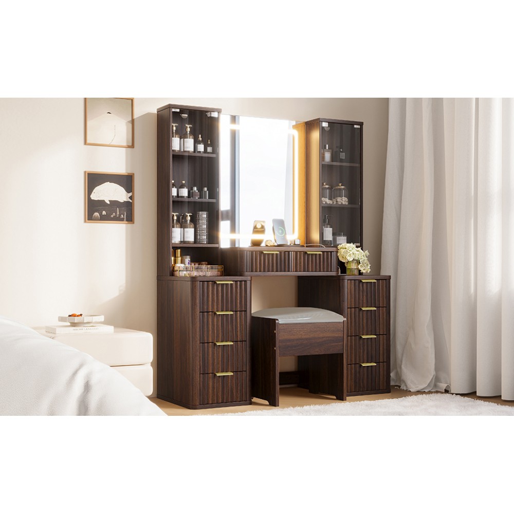 как выглядит 43.5" Fluted Makeup Vanity Desk with Mirror and Lights, Modern Glass Top Vanity фото