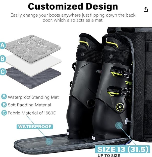 Ski Snowboard Boot Gear Helmet Waterproof Backpack NEW 50L