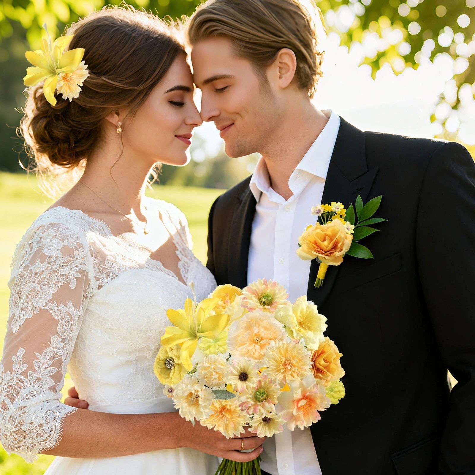 YiYunFloral Artificial Flower Heads Combo - 48pcs Yellow Silk Flowers Bulk Fa...