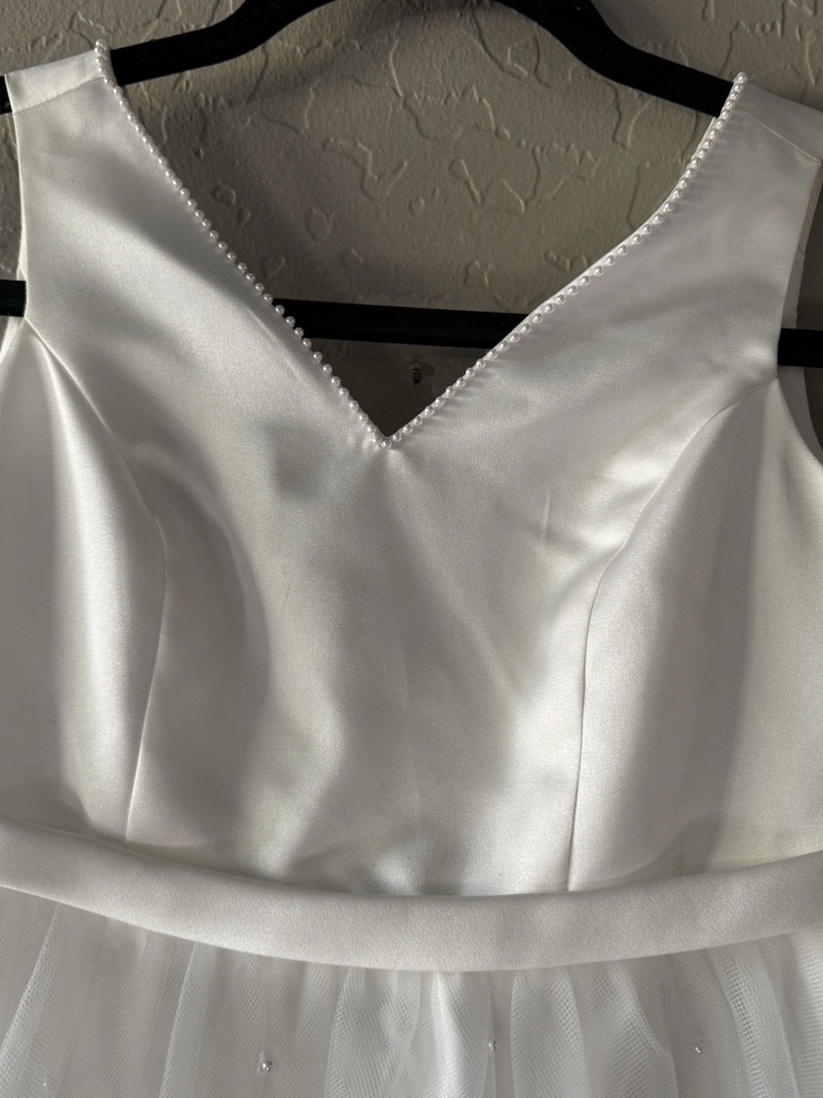 как выглядит Flower Girl Tulle Dress Sleeveless Pearls Size 8 DB Studio David s Bridal фото