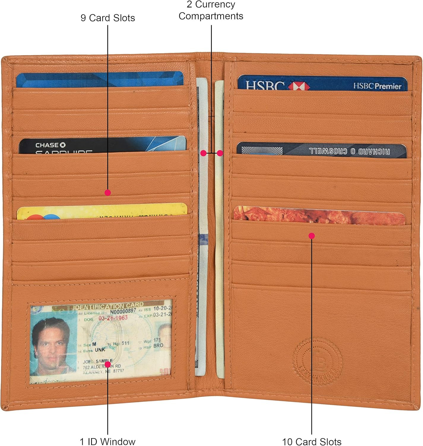 Leatherboss Credit Card Holder Tall Wallet with 18 Credit Card Slots