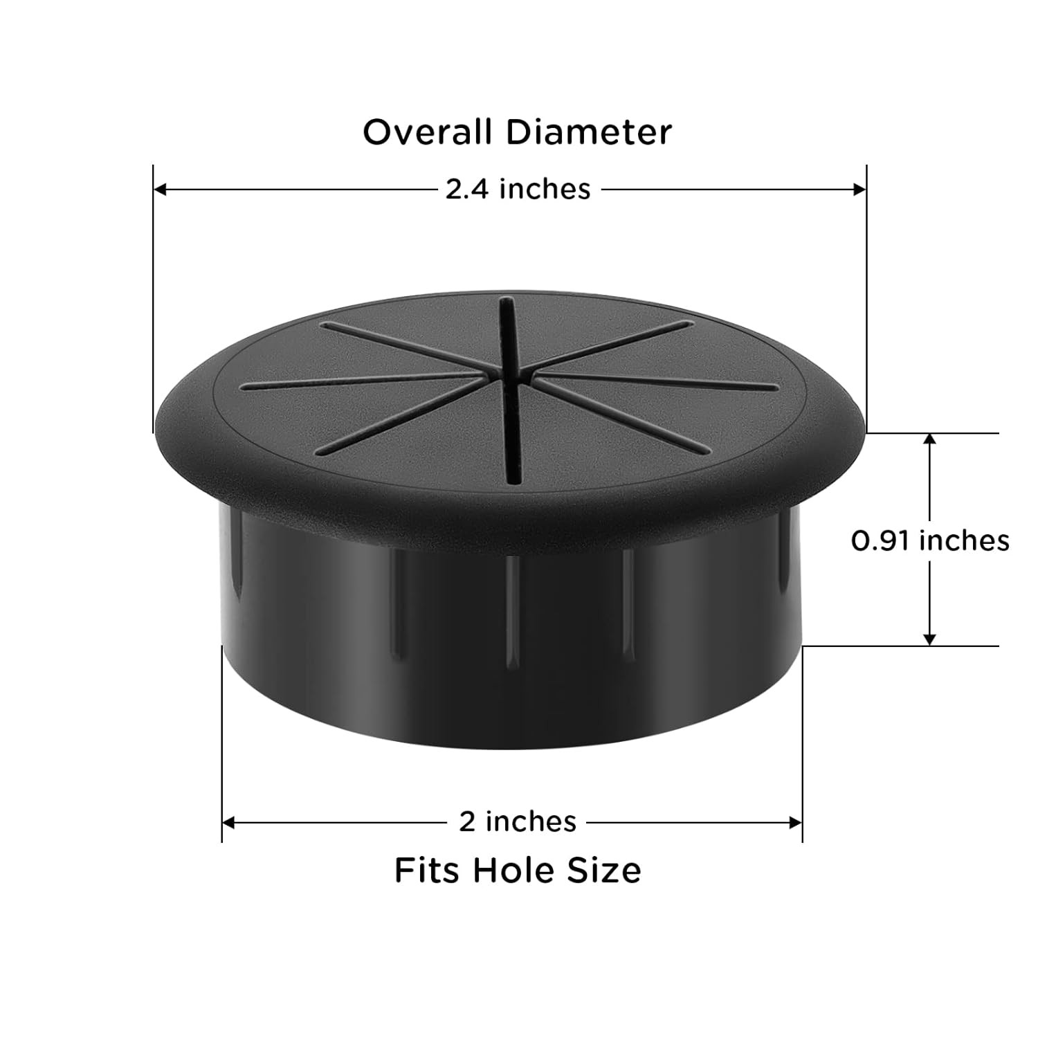 HYCC 2 Inch Desk Grommet Black, Desk Hole Cover for Cables, Flexible Cable Gromm