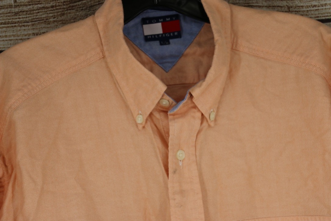 как выглядит Tommy Hilfiger Mens Size Large Button Up Long Sleeve Shirt Orange фото