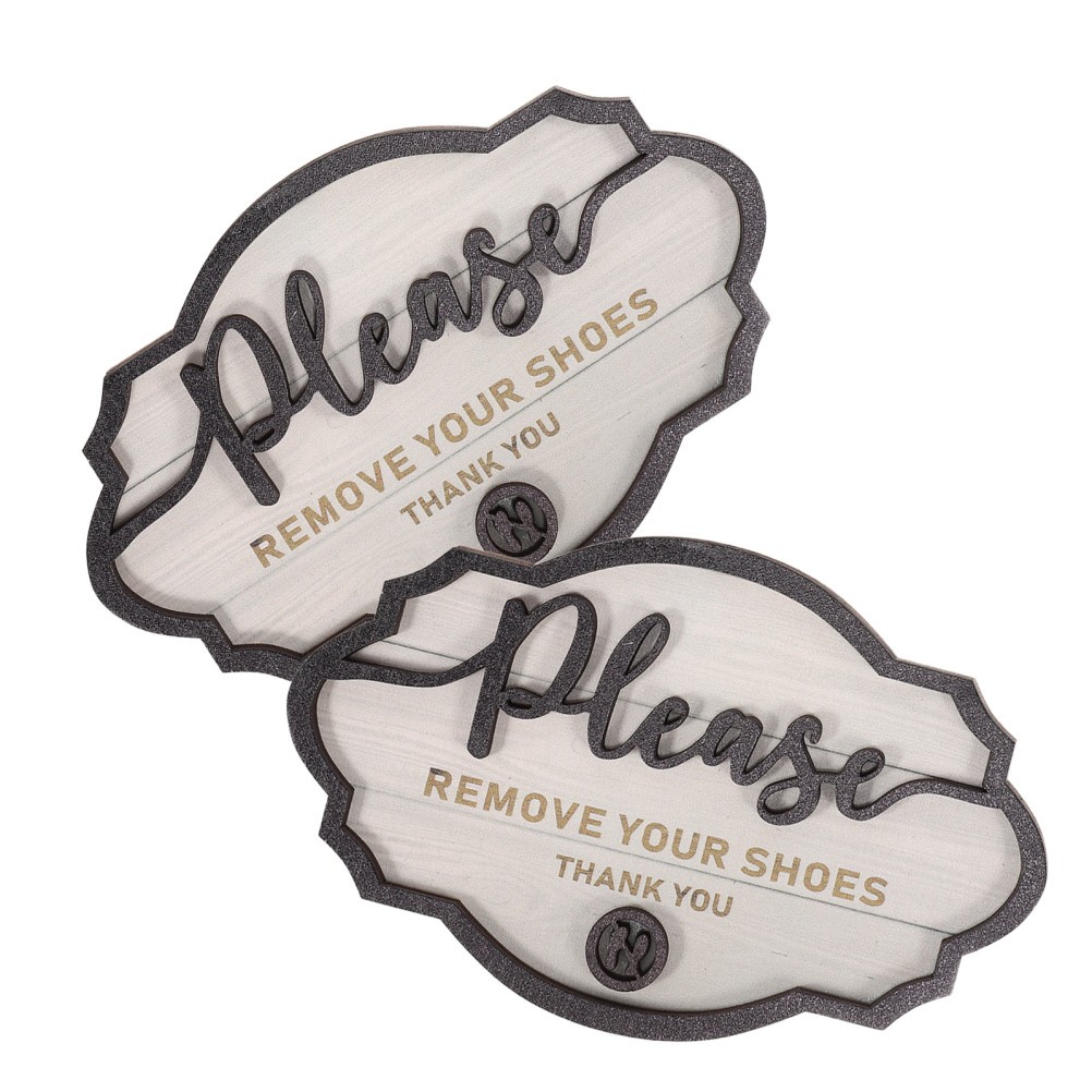 2 Pcs Wooden Shoes Off Sign Rustic Please Remove Your Shoes For Front Door Decor