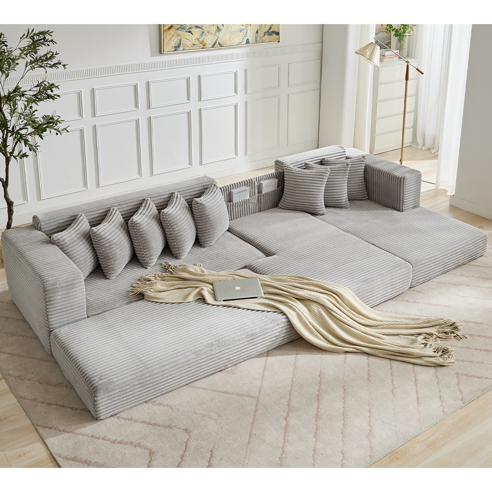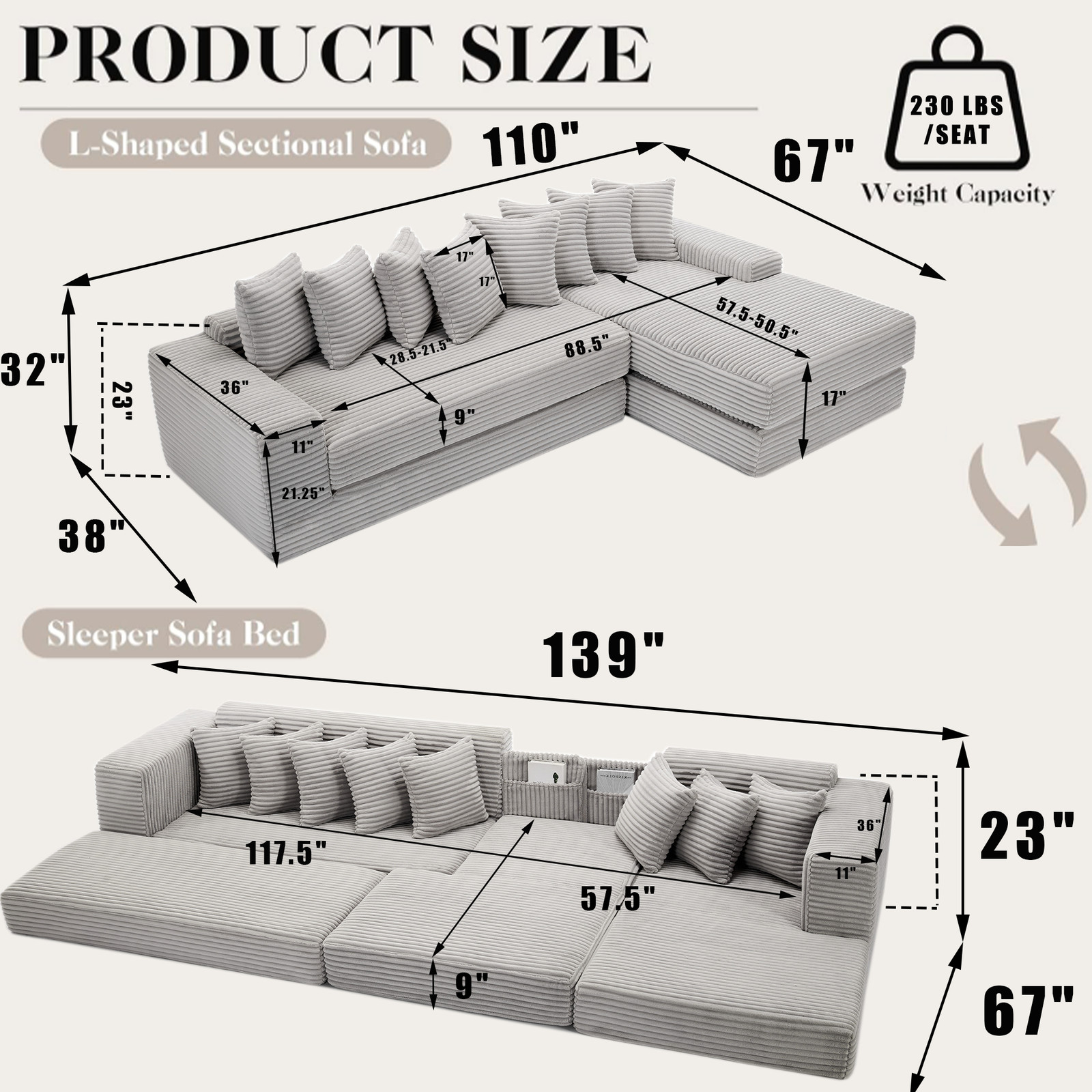 Oversize Cloud Couch,L-Shape Sofa,Convertible Floor Sleeper Sofa Bed w/8 Pillows