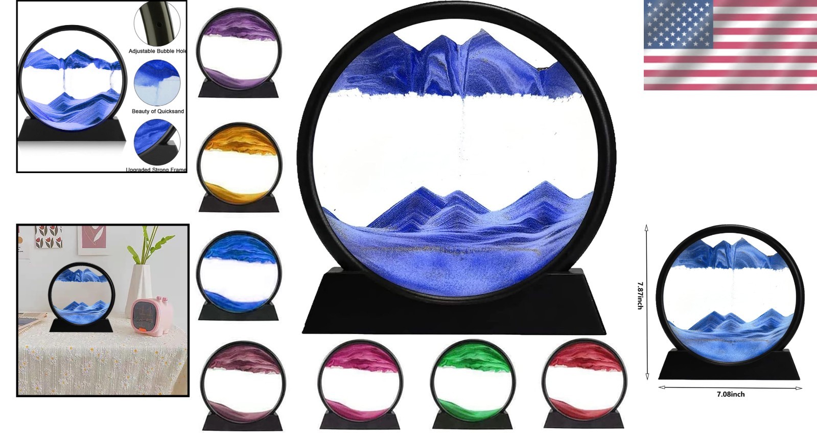 Sand Art Liquid Motion 3D Deep Sea Flowing Sand Pictures for Desk Decor 7''