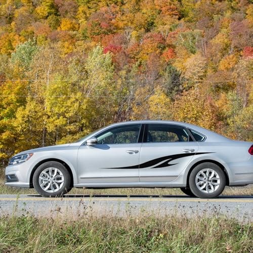 2Pcs 74.8'' Car Body Side Vinyl Decal Sports Racing Stripe Side Skirt Black
