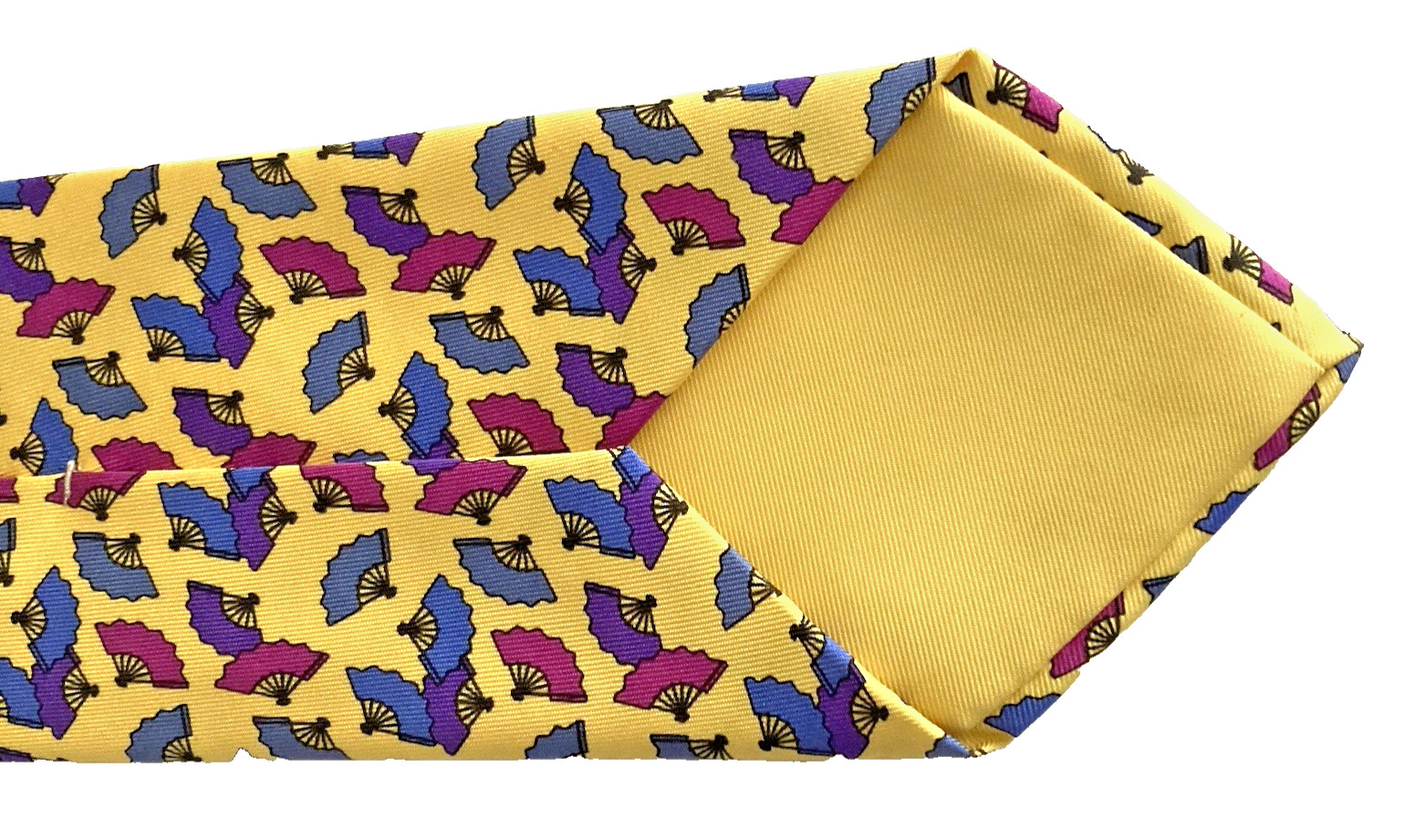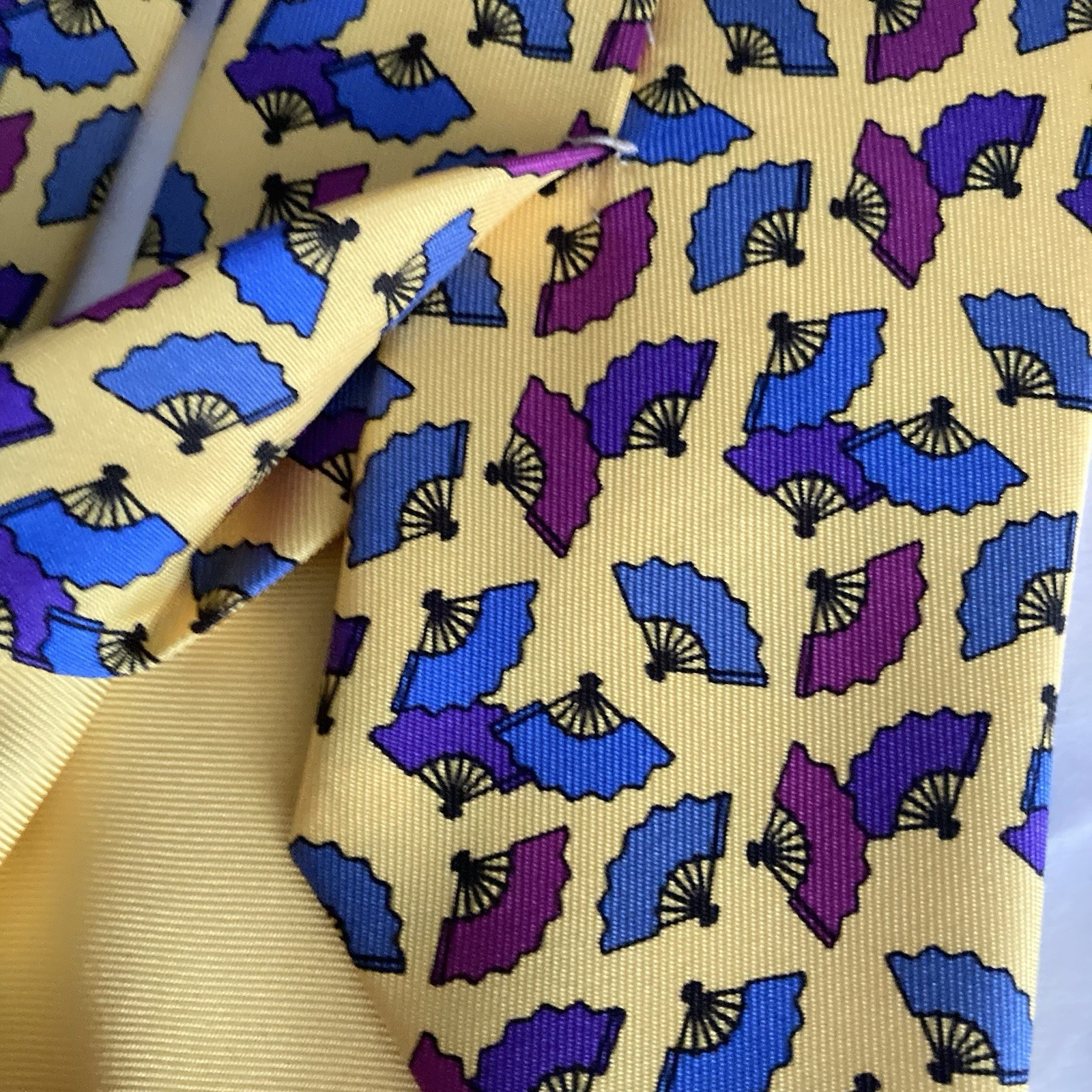 как выглядит HERMES Men s Yellow Foulard Print Multicolor Hand Fans Silk Tie/ 59 France фото