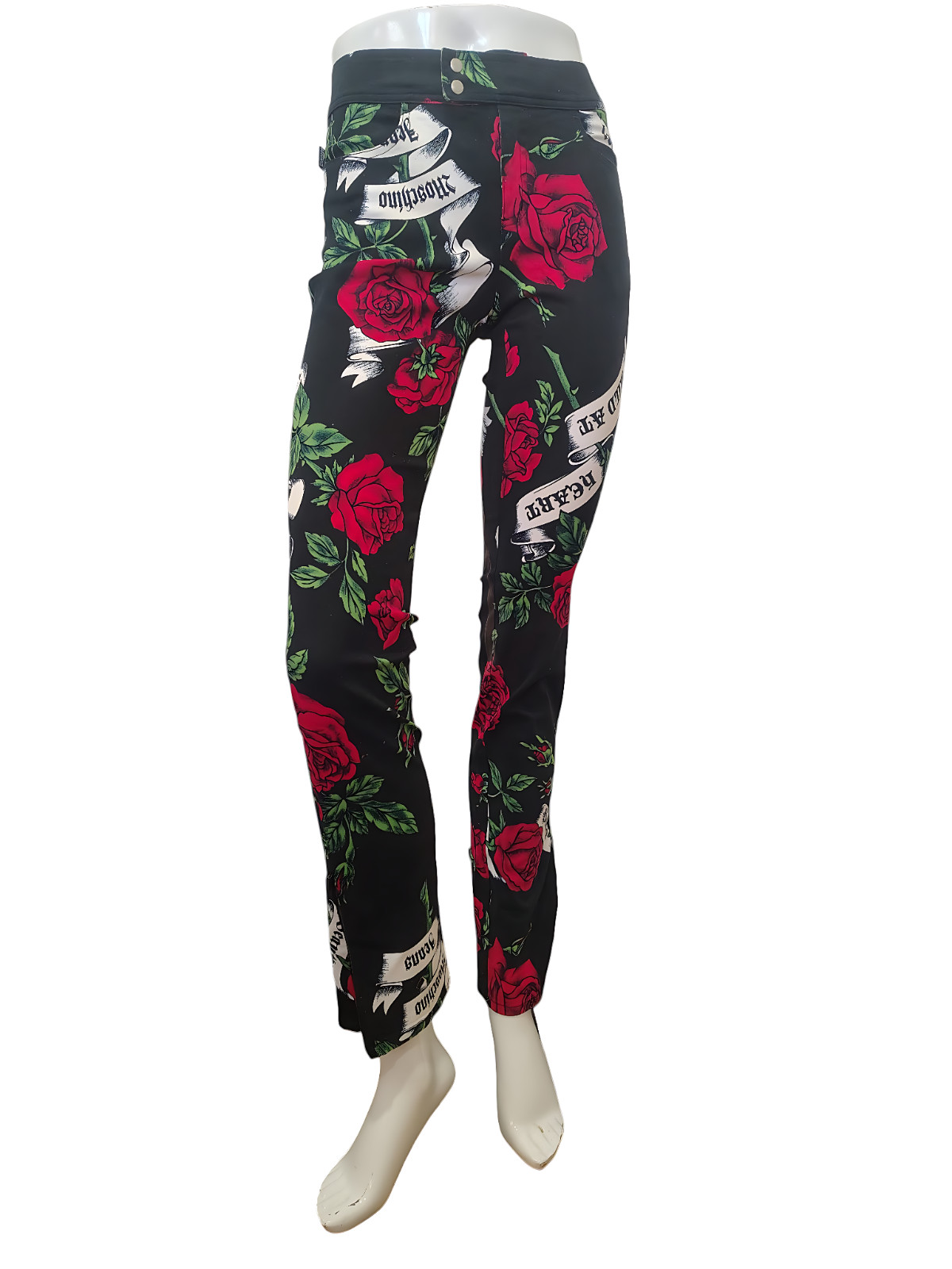 Vtg Moschino Jeans 90s Wild At Heart Rose Print Pants Black Straight Leg Size 4