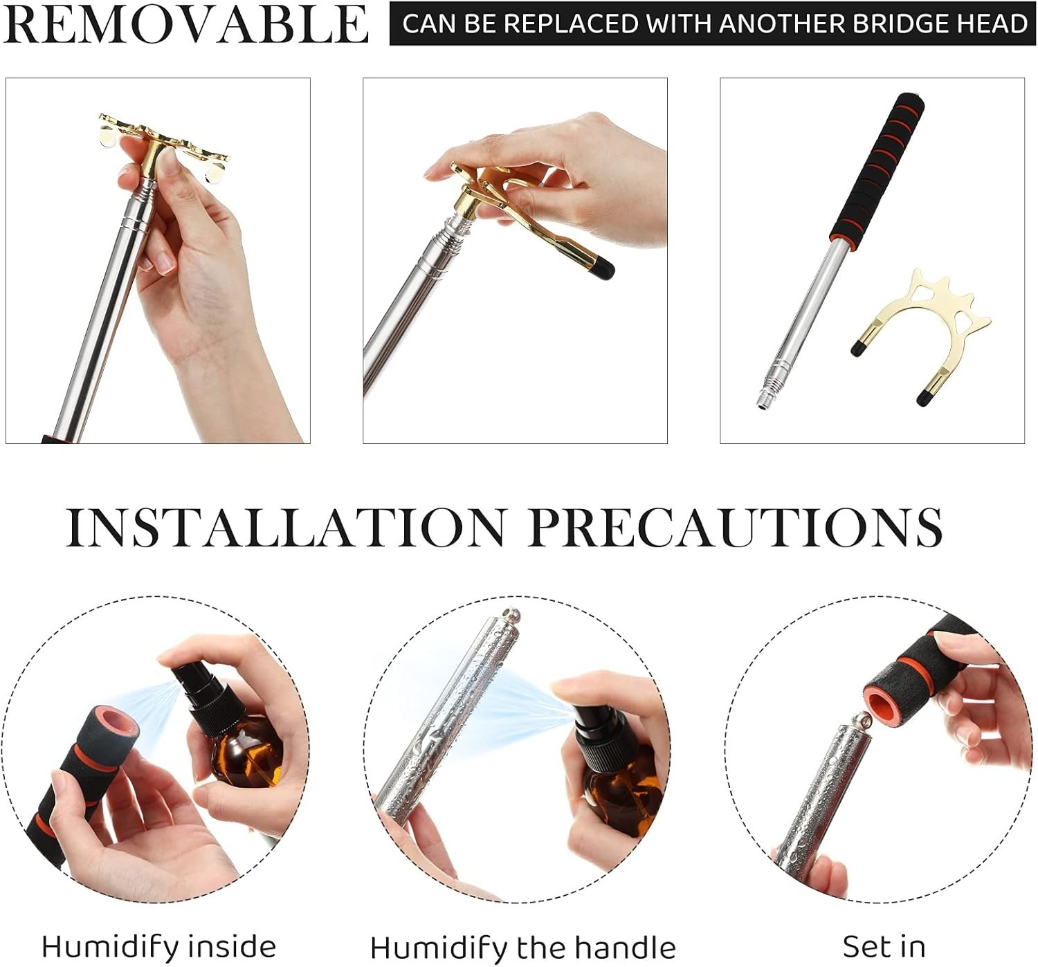 Stainless Steel Pool Bridge Stick with Removable Brass Head 5 Shot Positions