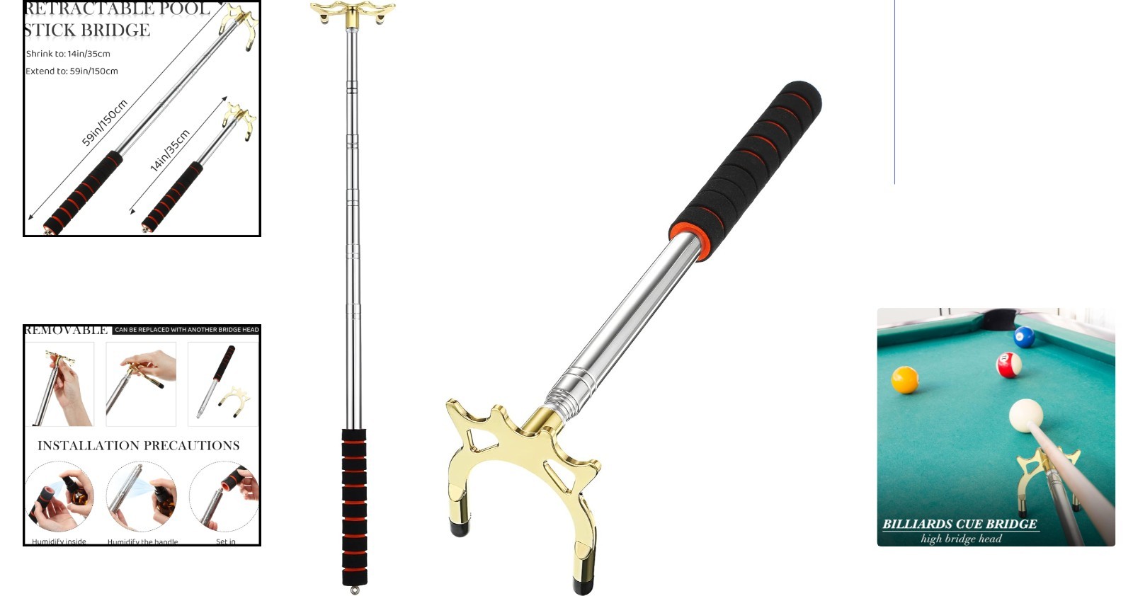 как выглядит Stainless Steel Pool Bridge Stick with Removable Brass Head 5 Shot Positions фото