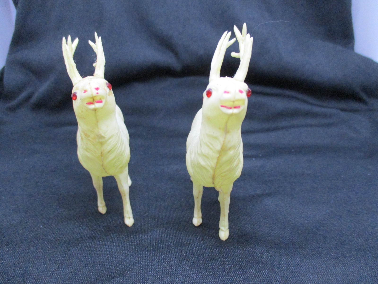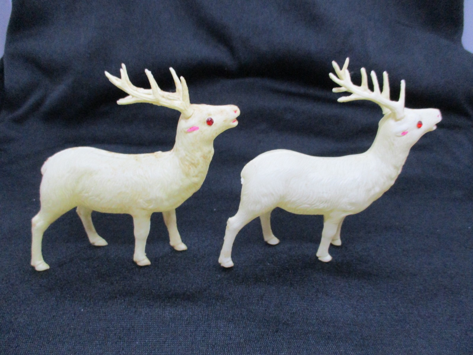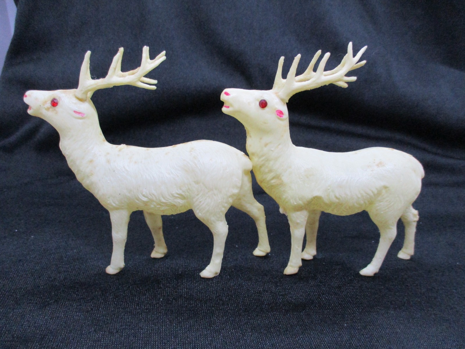 • Pair of Vintage Japan Royal Celluloid Reindeer with Red Jewel Eyes