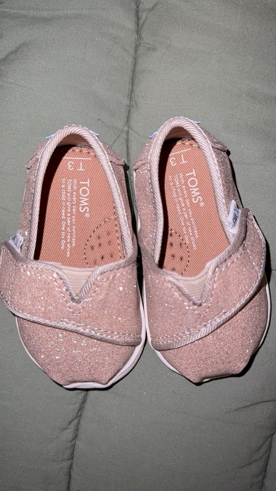 Tom s Gold Glitter Slip-ons Baby Size 3 NWOT NWOB Never Worn No Box New