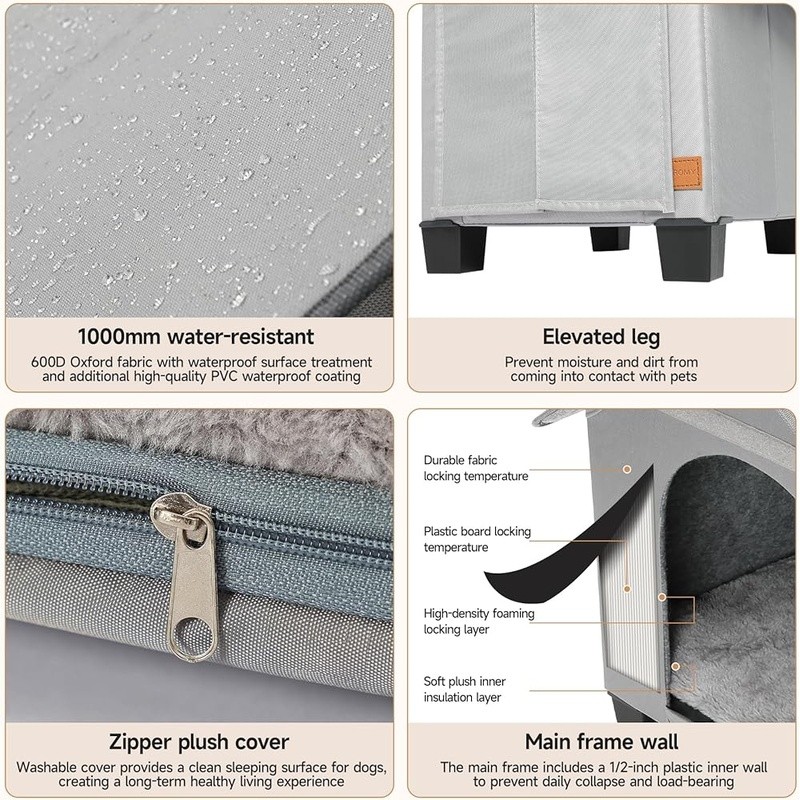 Weatherproof Insulated Dog House Elevated Structure Removable Mats Curtains New