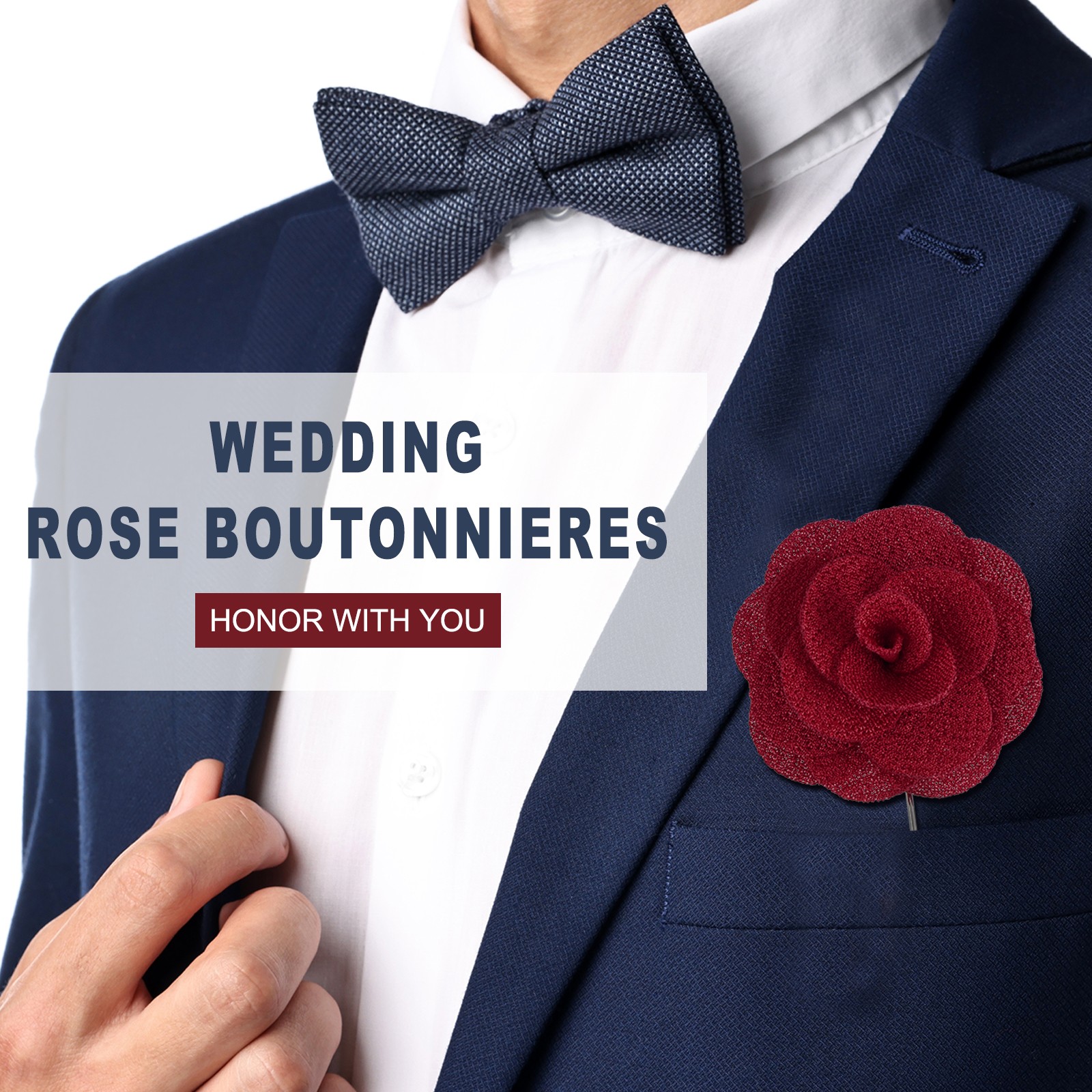 12Pcs Groom Boutonnieres Rose Boutonnieres Pins 3.5x1.6 for Wedding Wine Red