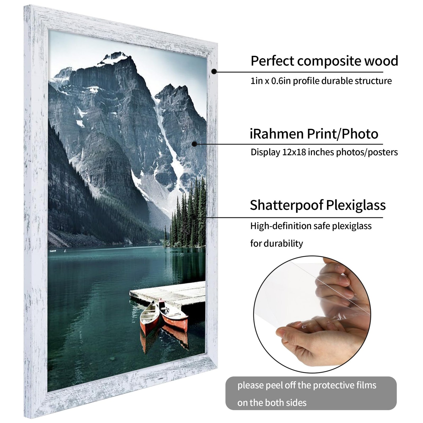 12x18 Picture Frame Set of 2 with Plexiglass, Distressed White Wood Poster Fr...