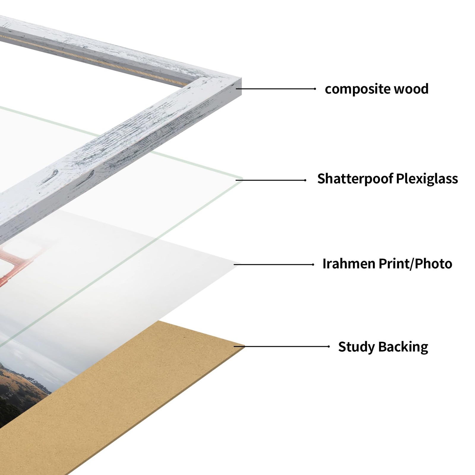 как выглядит 12x18 Picture Frame Set of 2 with Plexiglass, Distressed White Wood Poster Fr... фото