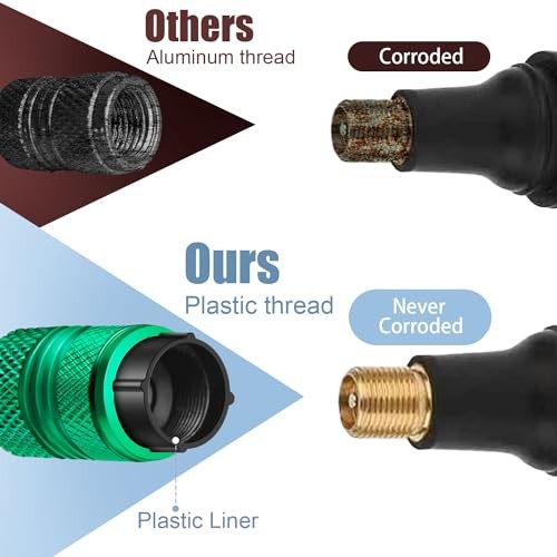 Tire Valve Stem Caps - 5 Pack Corrosion Resistant Premium Universal Green