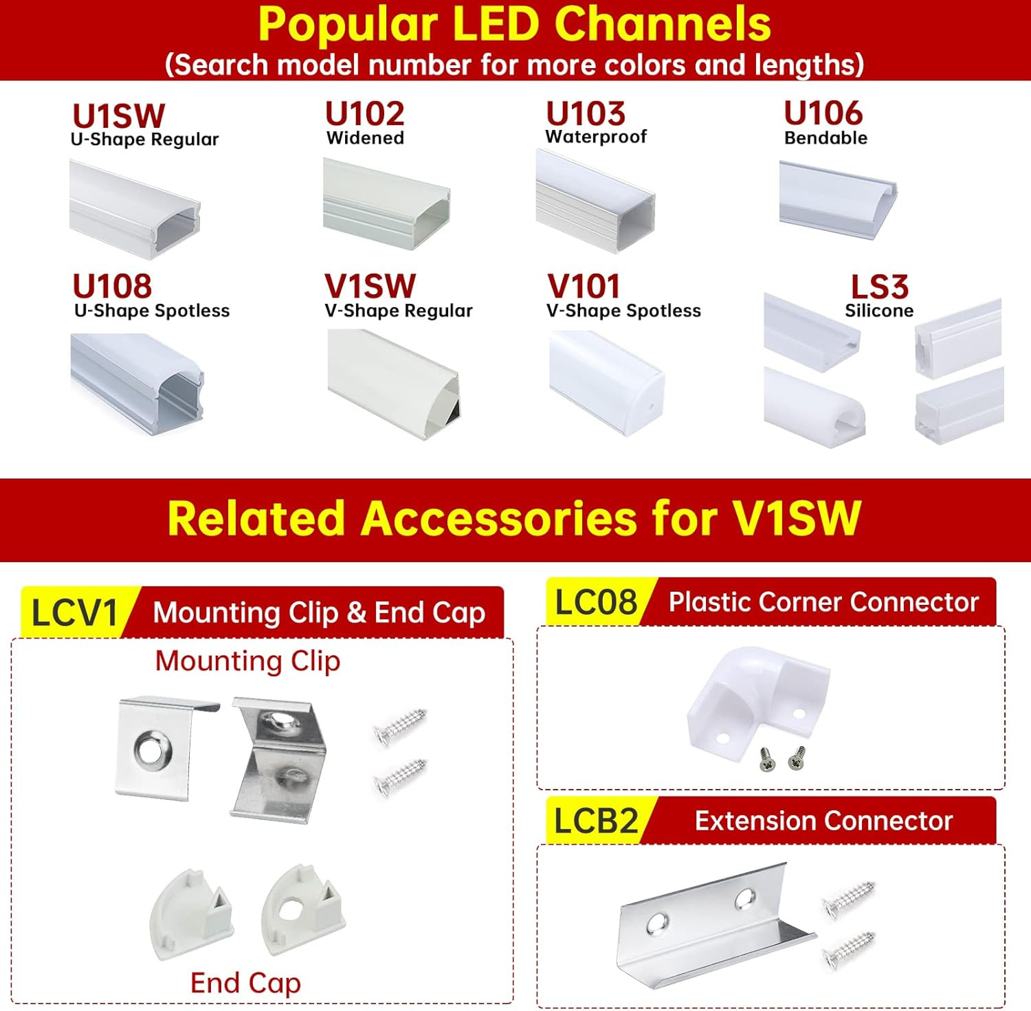 Included Components: 6-Pack 3.3FT/1Meter V Shape LED Aluminum Channel System, mounting
