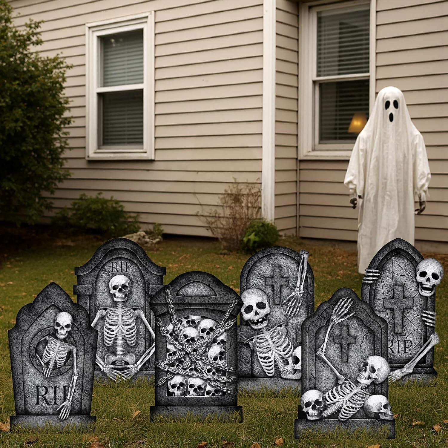 Graveyard Tombstones Halloween Decorations Outdoor: 6Pcs Large Scary Gravestone