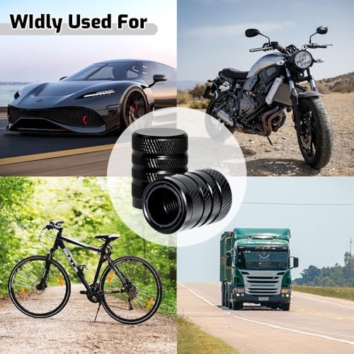 4-Piece Anodized Aluminum-Plastic Composite Tire Valve Stem Caps with Black