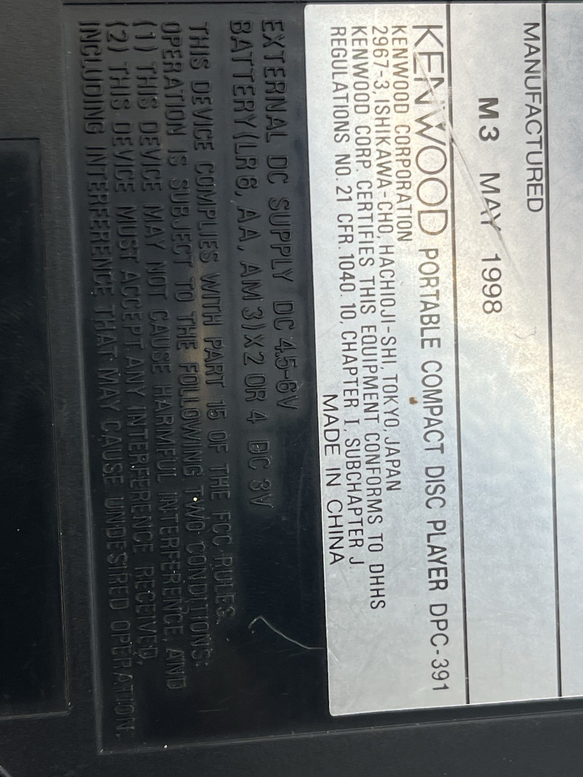 Kenwood DPC-391 Portable CD Player WORKS With Headphones, AC/DC Cord Case