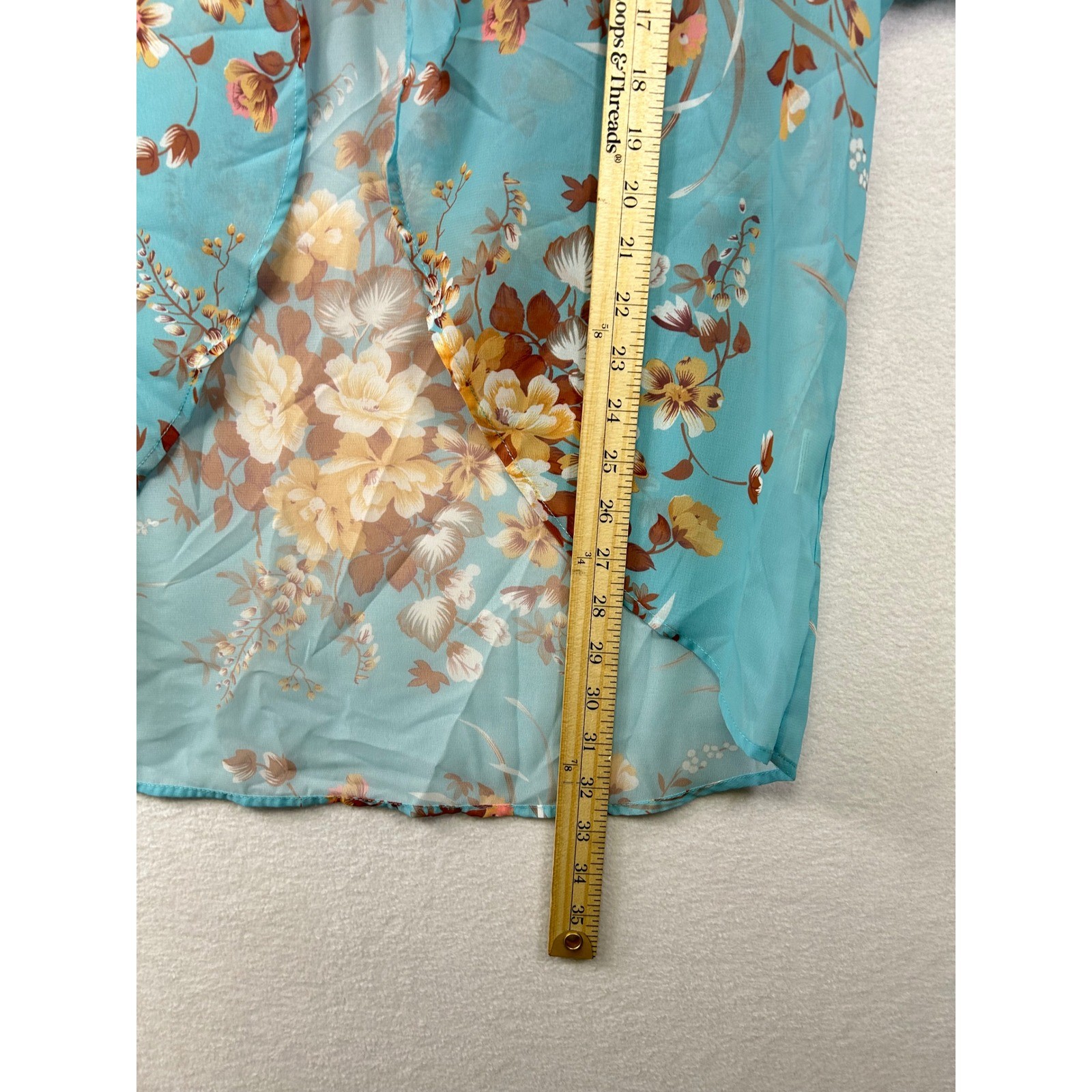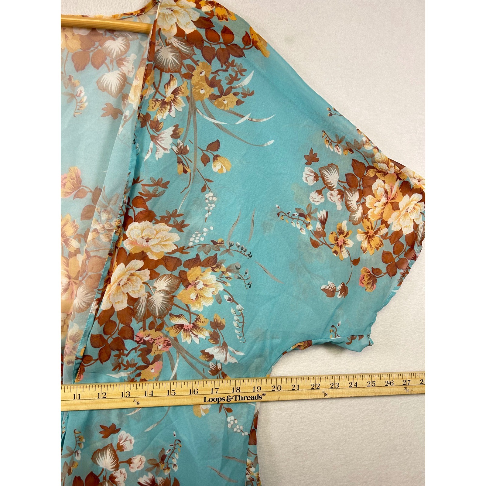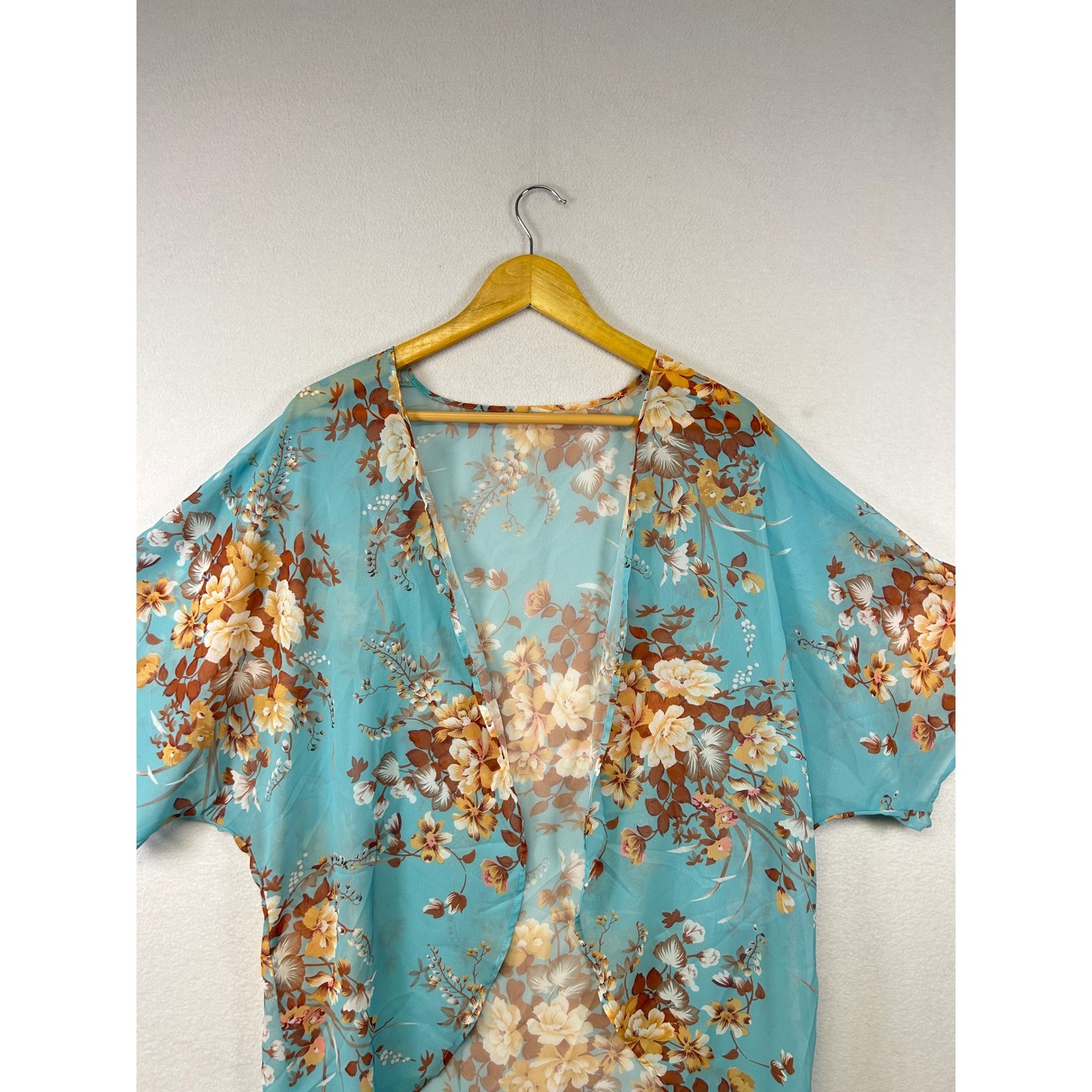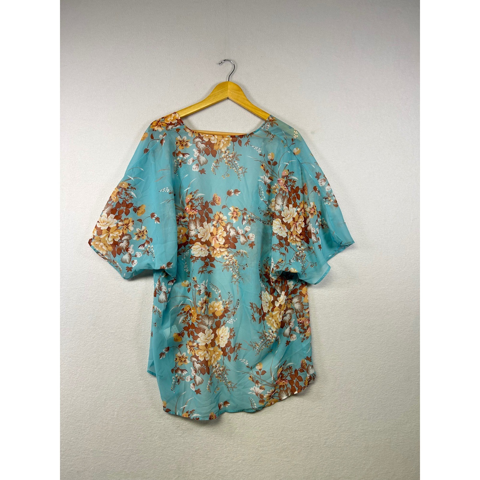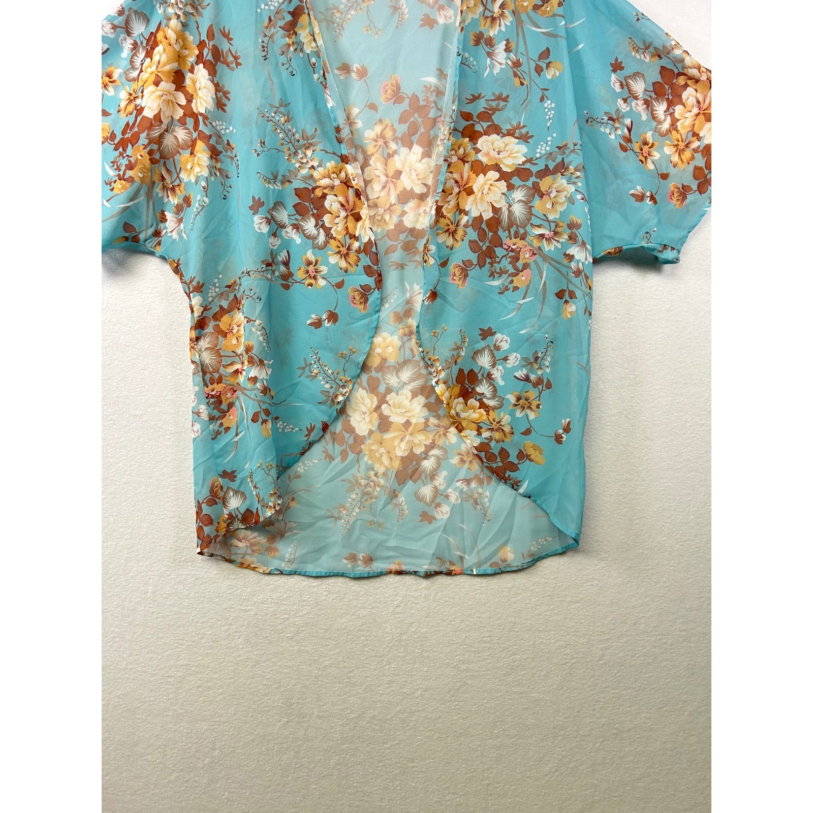 как выглядит Sheer Floral Kimono Cardigan Teal Blue Brown Cream Butterfly Sleeve Open Front M фото