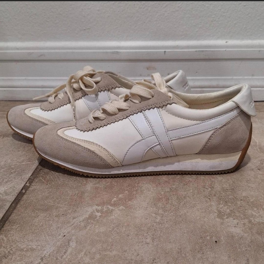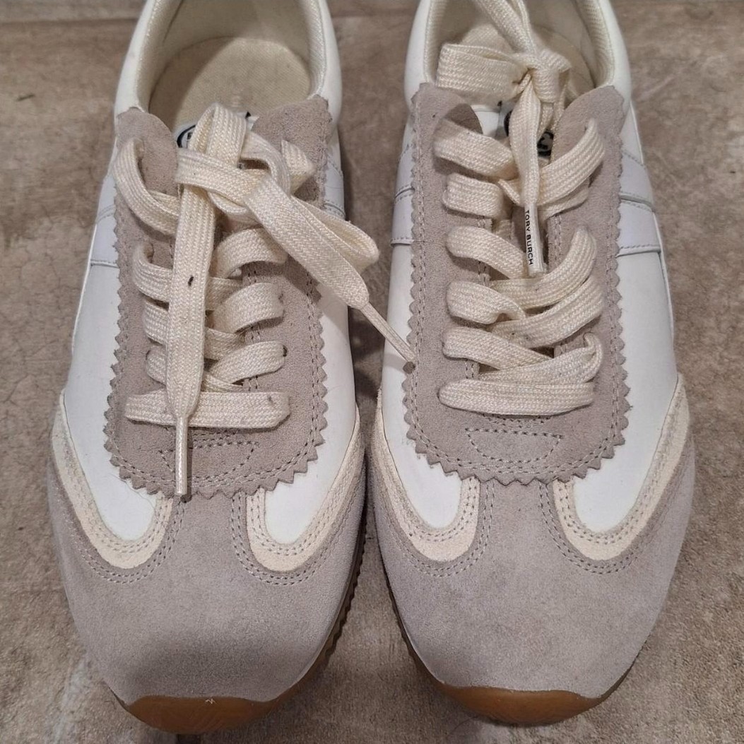 Tory Burch Sawtooth Logo Sneakers Snow White/ Beige Suede Retro Runner Womens