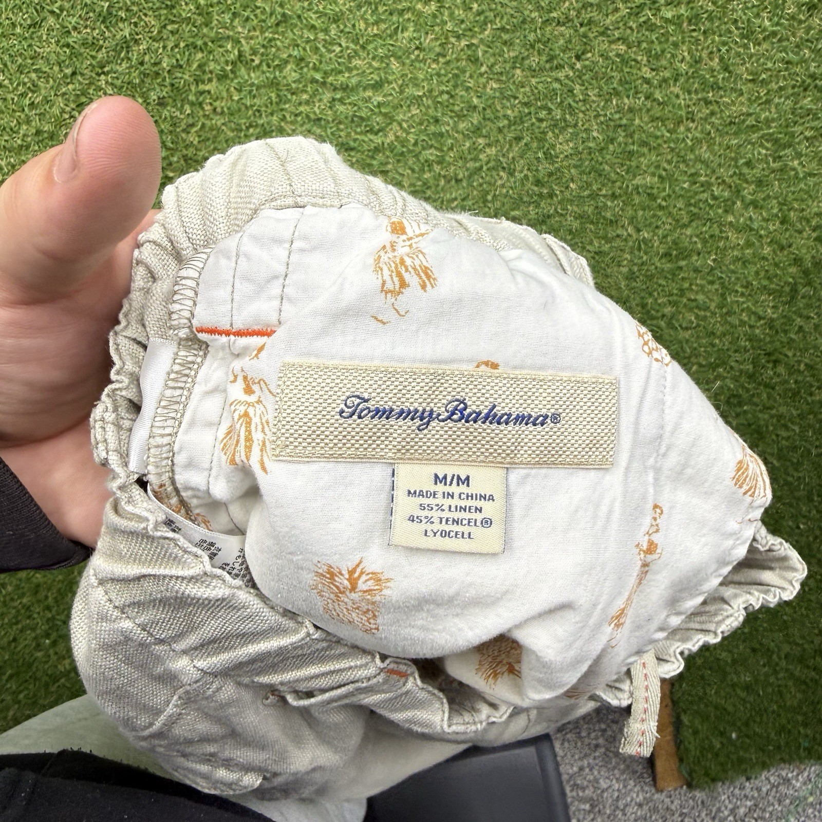 как выглядит Tommy Bahama Linen Shorts Mens Medium Elastic Waist Cargo Casual Beach Comfort фото