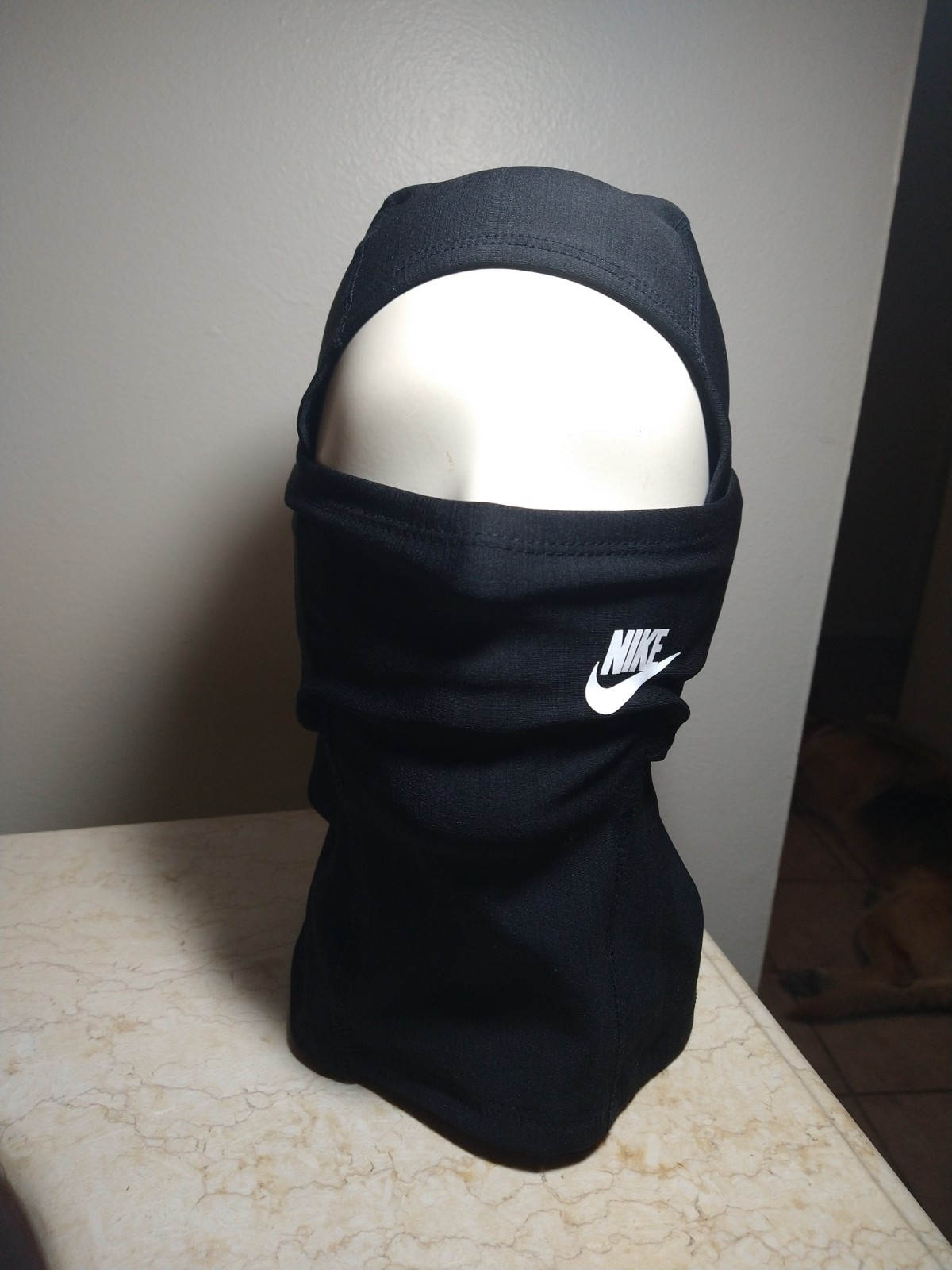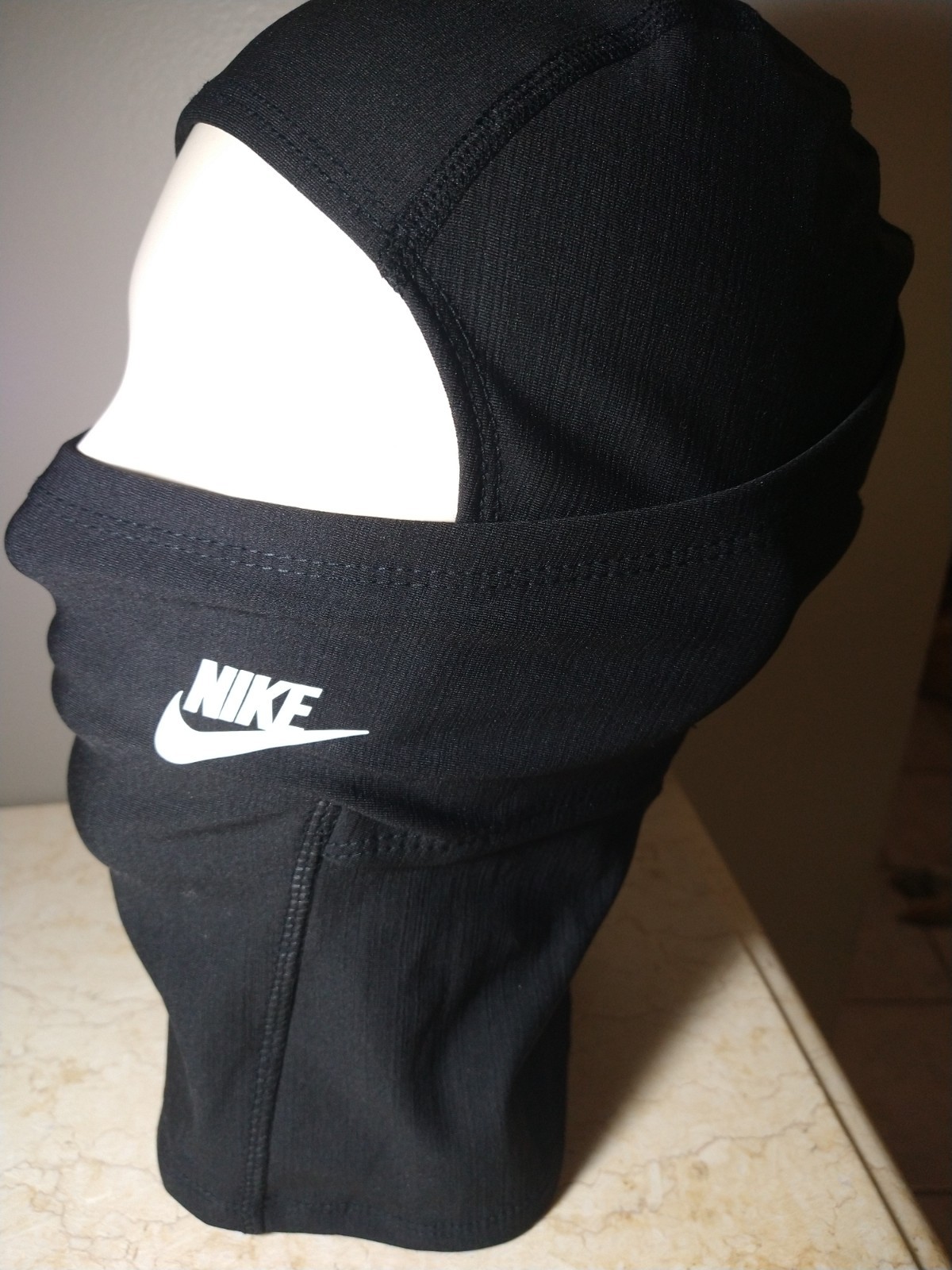 как выглядит Unisex Nike Pro Hyperwarm Thermafit Hood Shiesty Ski Mask BLACK W/ NIKE Logo фото