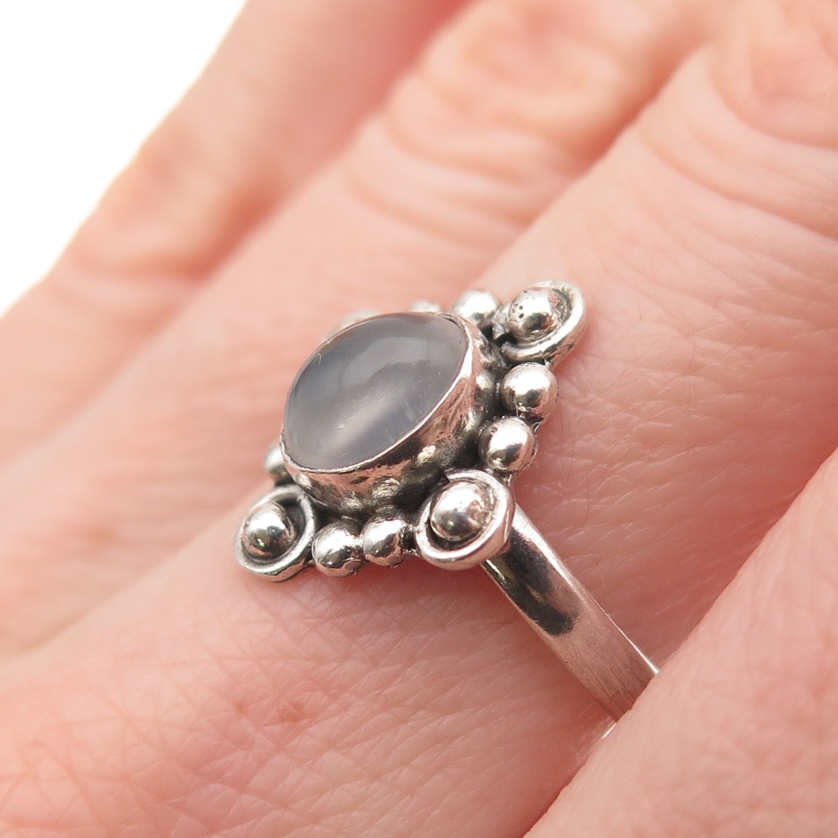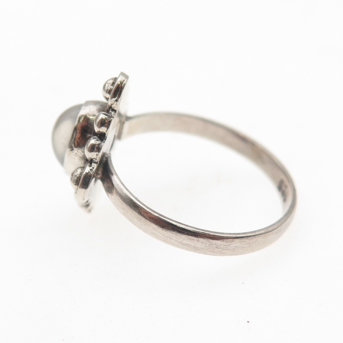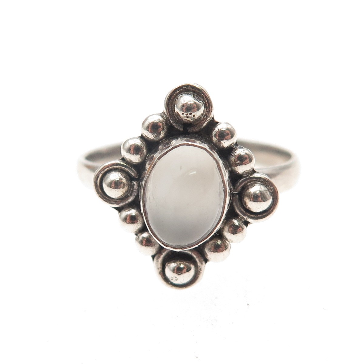 925 Sterling Silver Vintage Real Moonstone Beaded Oxidized Ring Size 7