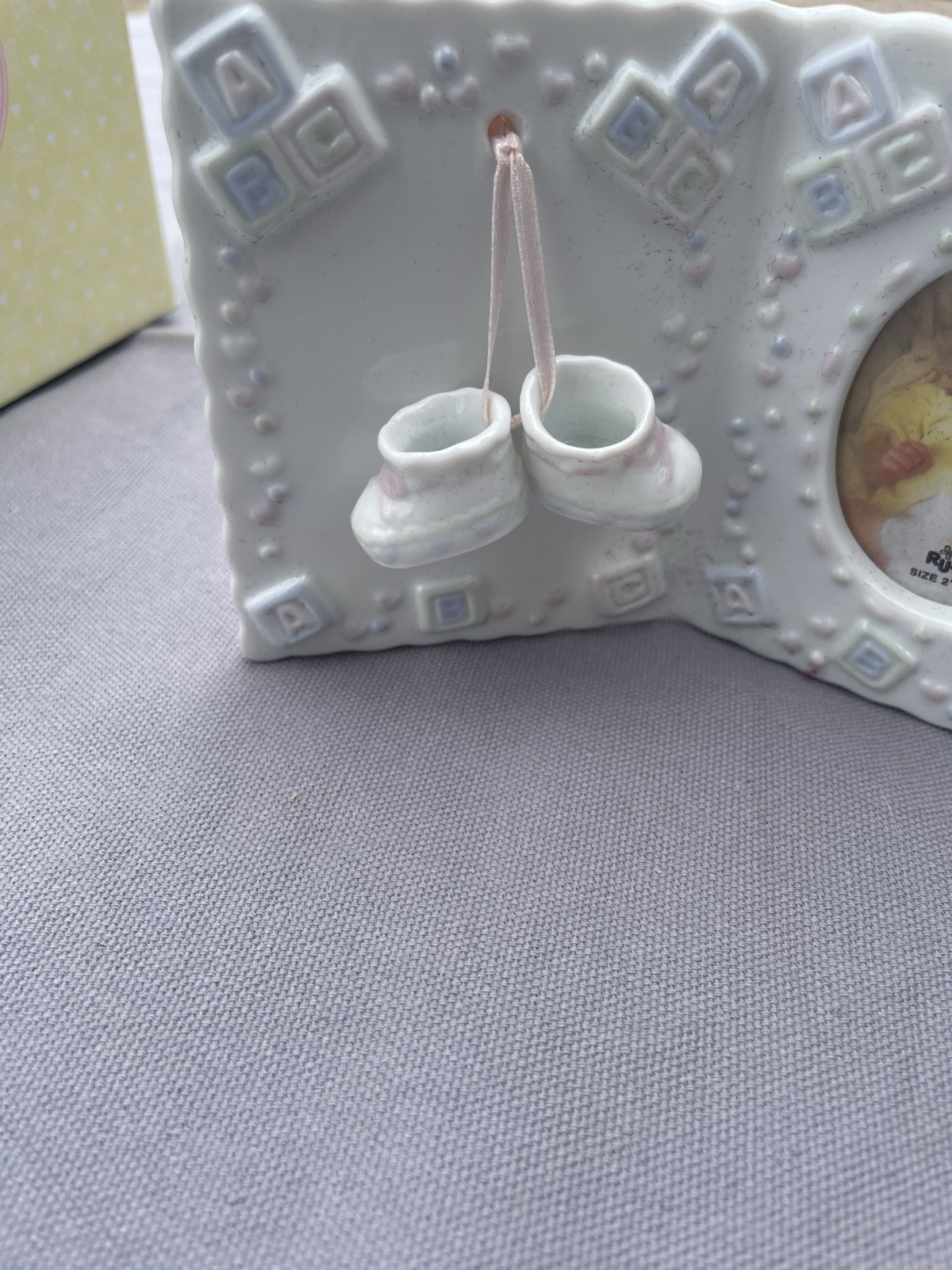 как выглядит Baby Blessing "Its a Girl " Photo Frame Porcelain 2 x 3 Photo - NEW Vintage фото