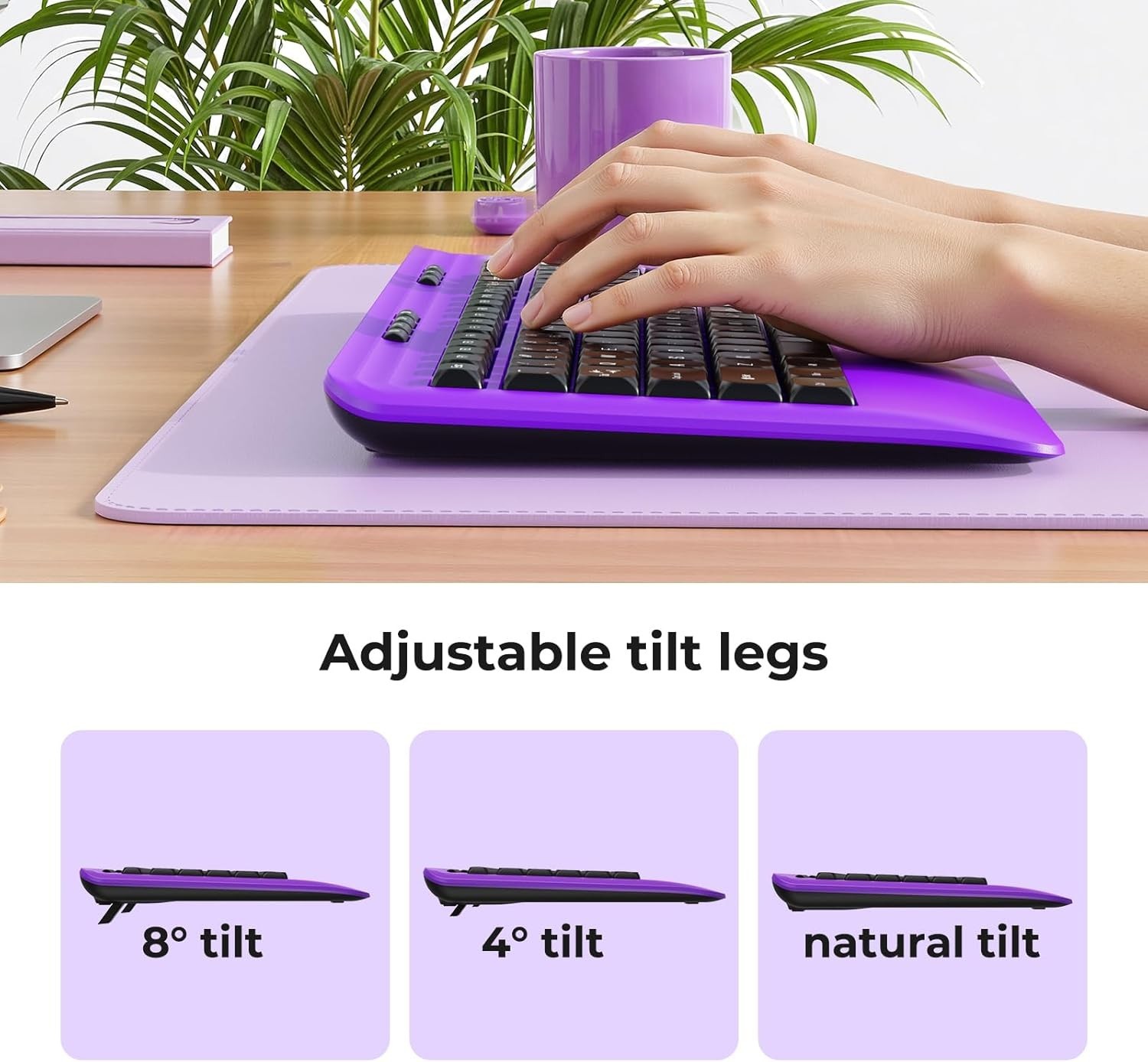 Wireless Keyboard and Mouse Set with Quiet Keys, 2.4G Full Size Purple Keyboard