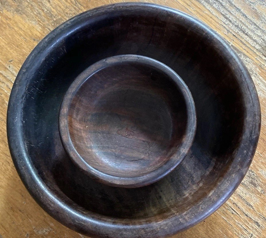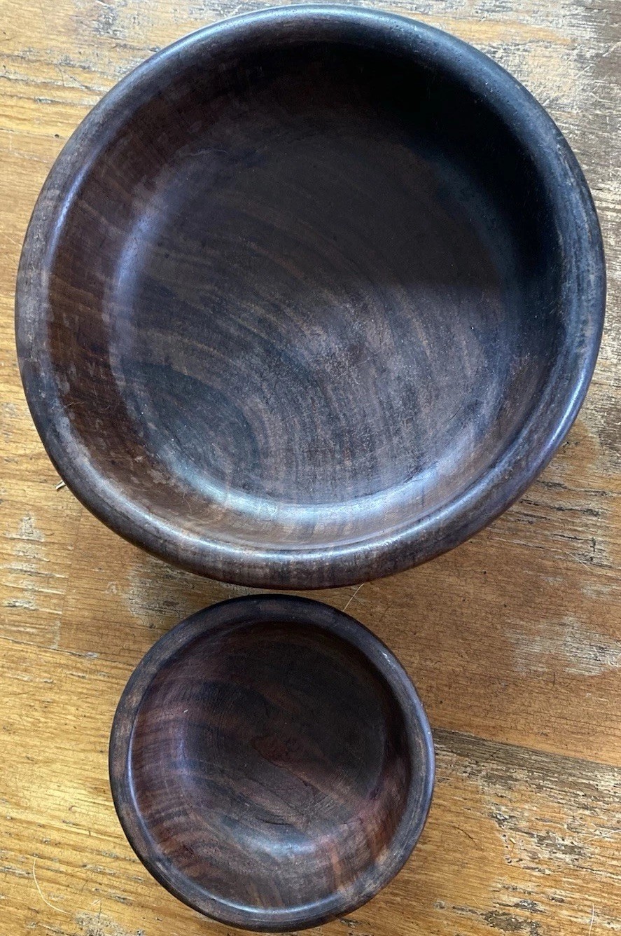 2 Handcarved Dark Wood Bowls w/ ANIMALS 4 7.5