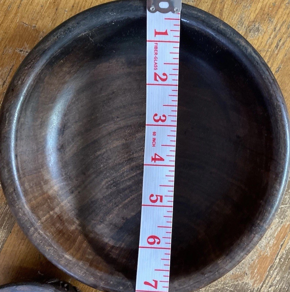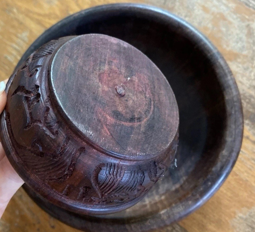 как выглядит 2 Handcarved Dark Wood Bowls w/ ANIMALS 4  7.5 фото