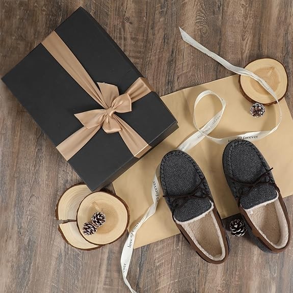 Men's Moccasin Slippers with Memory Foam closed back House Shoes Gray Size 10