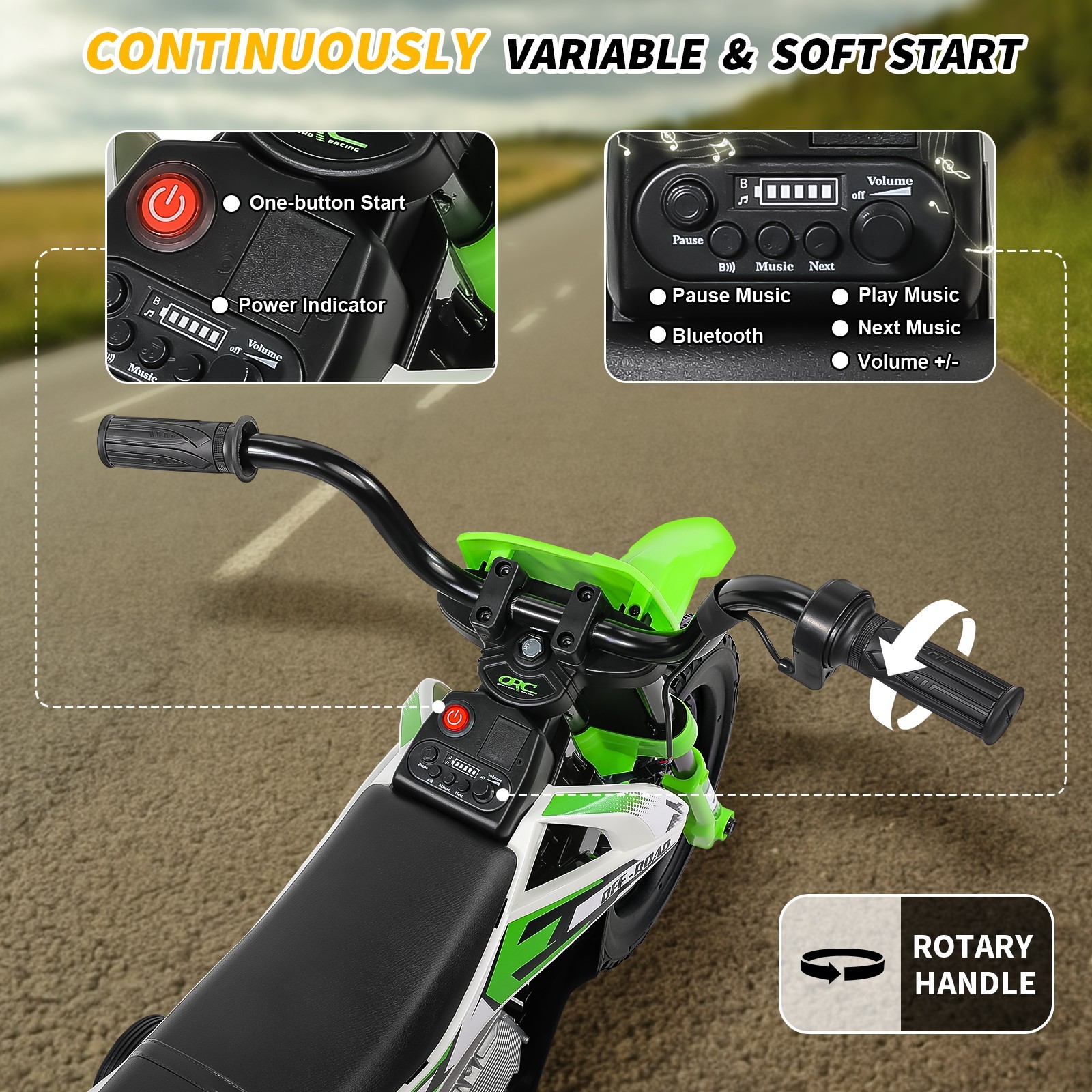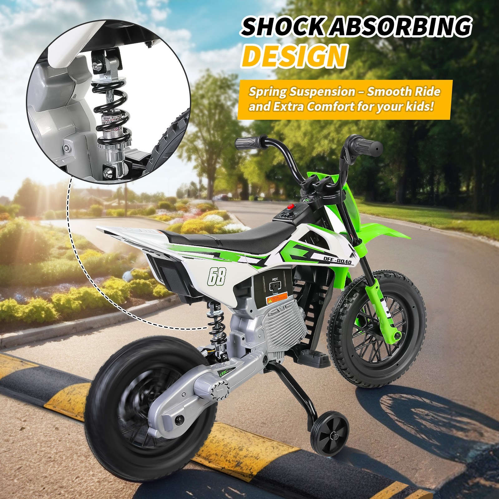 12V Electric Dirt Bike Kids Ride on Motorcycle w/ 2 Training Wheels Ride on Toy-