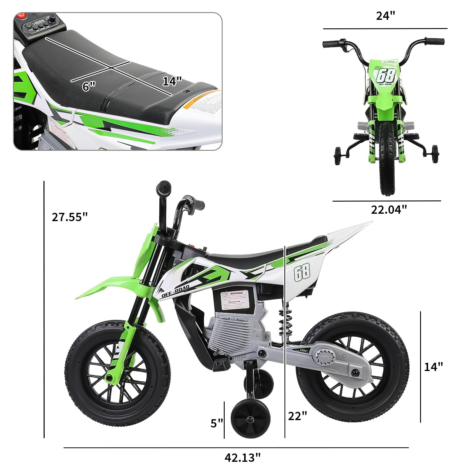 как выглядит 12V Electric Dirt Bike Kids Ride on Motorcycle w/ 2 Training Wheels Ride on Toy- фото