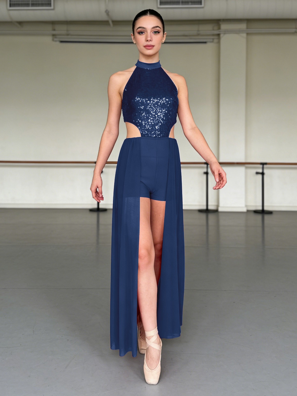 как выглядит Womens Bodysuit Mesh Dance Dress Prom Dancewear Skirt Lyrical Integrated Party фото